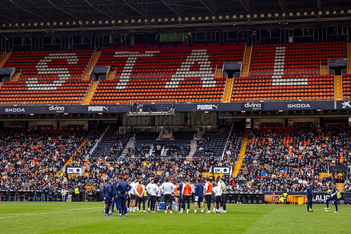 El Valencia CF ha realizado, en la mañana de este lunes 29 de diciembre, una nueva sesión tras el parón navideño y lo ha hecho junto a 6.000 valencianistas en el Camp de Mestalla.