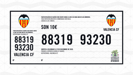 Valencia CF El Valencia CF posa a la venda participacions del Sorteig Extraordinari de Nadal www.valenciacf.com 03 diciembre 2020