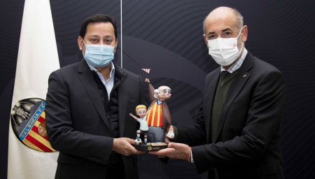 Valencia CF Ninot presented to Athletic Club president VCF president Anil Murthy handed over the latest figurine to his counterpart for the Basque side 12 December 2020