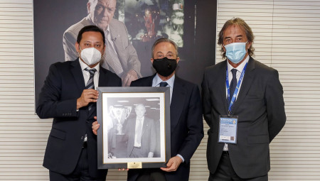 Valencia CF Institutional gesture to remember Di Stefano Valencia CF president Anil Murthy and ambassador Ricardo Arias gifted a framed photo of the legendary player and coach 18 June 2020