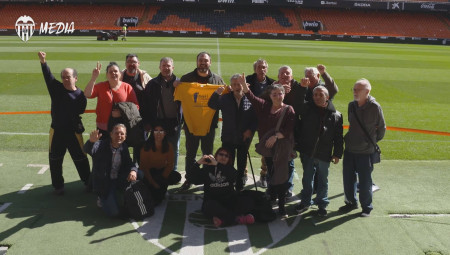 Club ambassadors Ricardo Arias and Bossio visit the ‘Multicentro Social Benicalap’ and accompany those who use the Day Centre on the Mestalla Tour