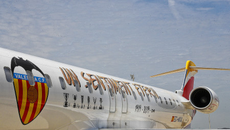 L'equip va volar en l'avió del Centenari de Air Nostrum, els rostres dels futbolistes reflectien il·lusió, onze anys tornaran a barallar per un títol