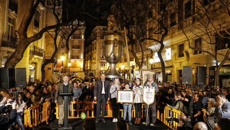 Espectacular plantà al 'tombe' de la Falla Tio Pep en homenatge al Centenari del Valencia CF