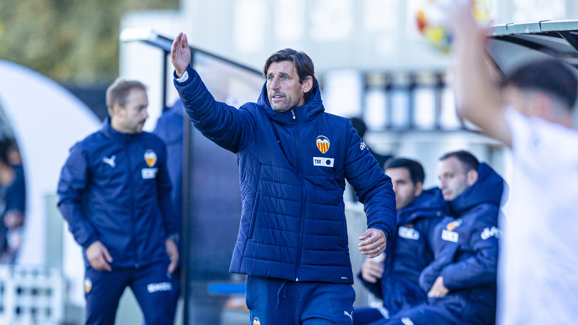 Tras el choque ante el conjunto catalán, el técnico del VCF Mestalla, Miguel Ángel Angulo, atendió a los medios de comunicación y destacó la importancia de la victoria en un encuentro en el que el marcador pudo ser mucho más amplio.
