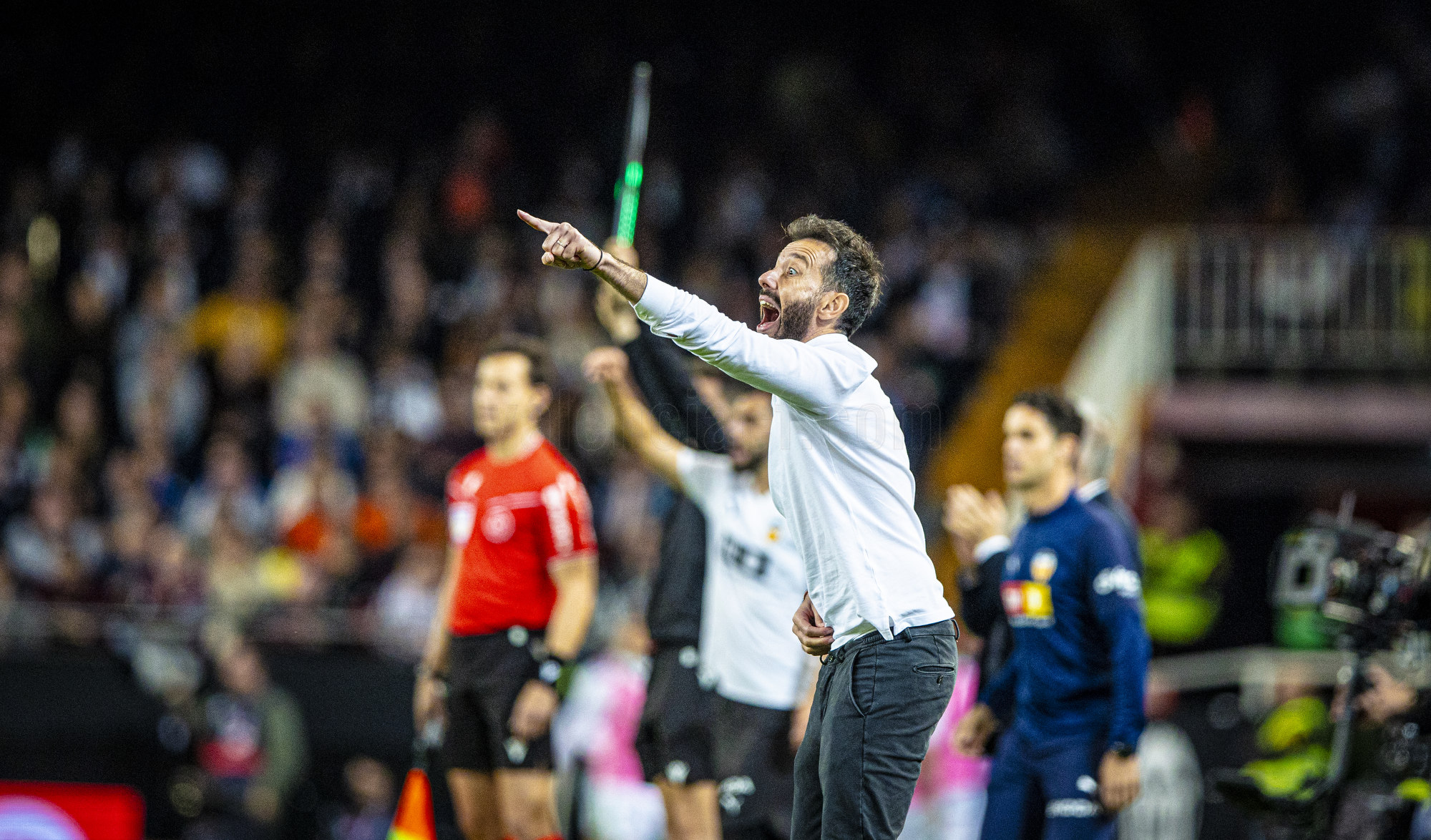 “La clave es que el equipo recuerde de aquí hasta el siguiente partido que es lo que te ayuda a competirlo, que recuerde lo que ha hecho, el nivel de intensidad necesario, el poso que debemos tener y que, aunque nos llevemos un golpe, no podemos rendirnos. Cuando no consigues los resultados que quieres y te poner 0-1 en una acción, ese momento es muy difícil. Pero, ni Mestalla ni el equipo se han rendido hoy. Gracias a que el equipo y Mestalla no se han rendido, hemos conseguido el punto. El empate no es el resultado que vamos a querer nunca, pero hoy Mestalla ha visto que el equipo ha querido los tres puntos y se ha vaciado por conseguirlos. Nuestra afición, aunque todos nos vayamos dolidos cuando no conseguimos los tres puntos, cuando ve al equipo vaciarse, entregarse y comprometerse, nos da el respaldo que necesitamos”.
