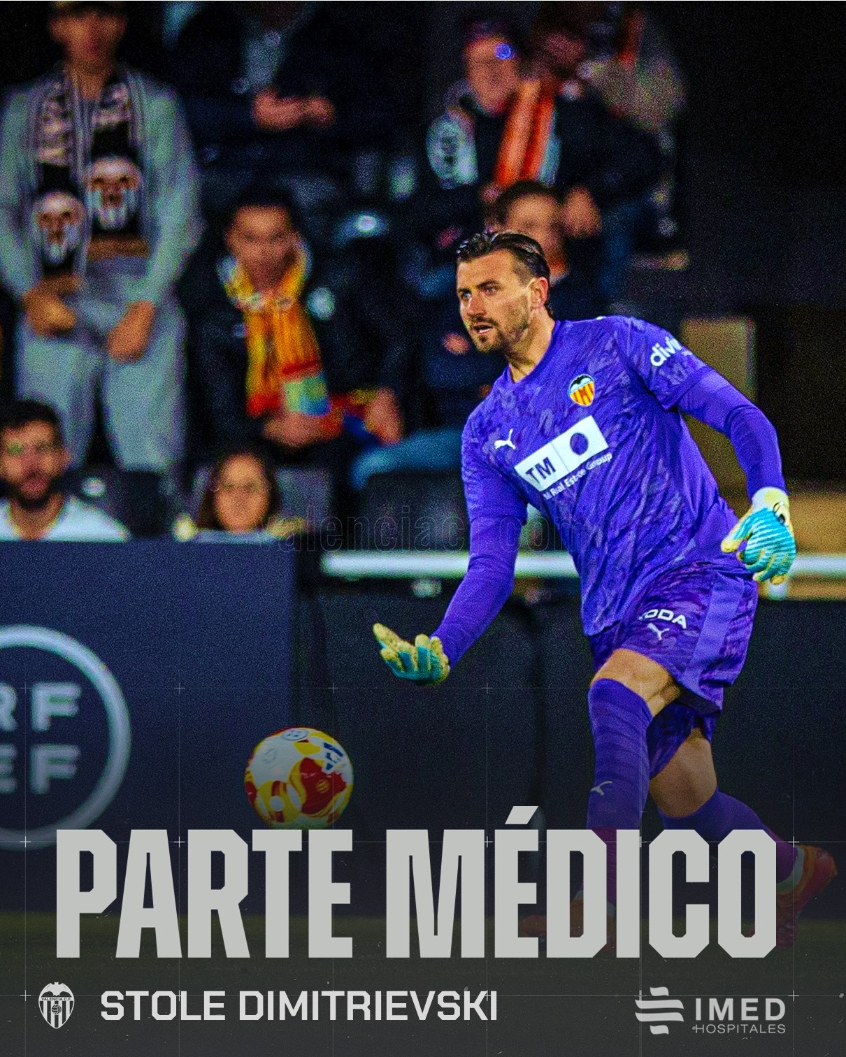 El porter valencianista seguirà tractament mèdic, fisioteràpic i de readaptació a la Ciutat Esportiva fins a millora clínica.