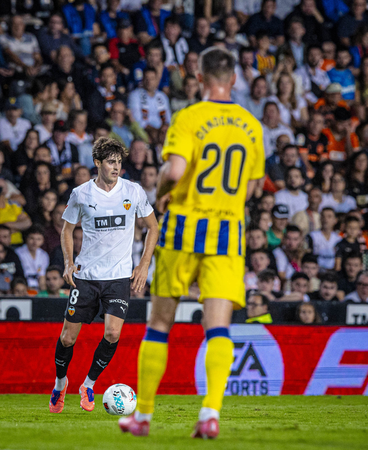 El Real Oviedo intentó parar el inicio eléctrico del Valencia CF con varias llegadas aéreas. Tras una segunda jugada después de un córner, le llegó el balón a Lucas Ahijado, quien disparó desde fuera del área y rozó el poste izquierdo de la meta de Agirrezabala. Pocos minutos más tarde, el rápido repliegue de Gayà y Tárrega, tras una jugada asociativa del equipo asturiano, evitaron un ‘mano a mano’ del delantero ‘carbayón’ F. Viñas.