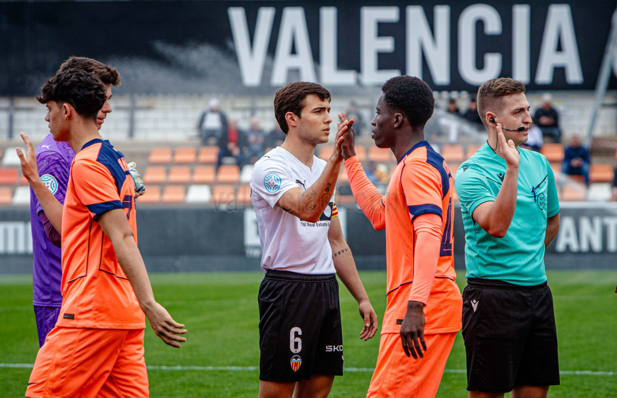 El partido se complicó para el filial poco antes del 60 con una rigurosa expulsión de Lucas Núñez con roja directa que obligó al VCF Mestalla a afrontar la última media hora en inferioridad numérica.