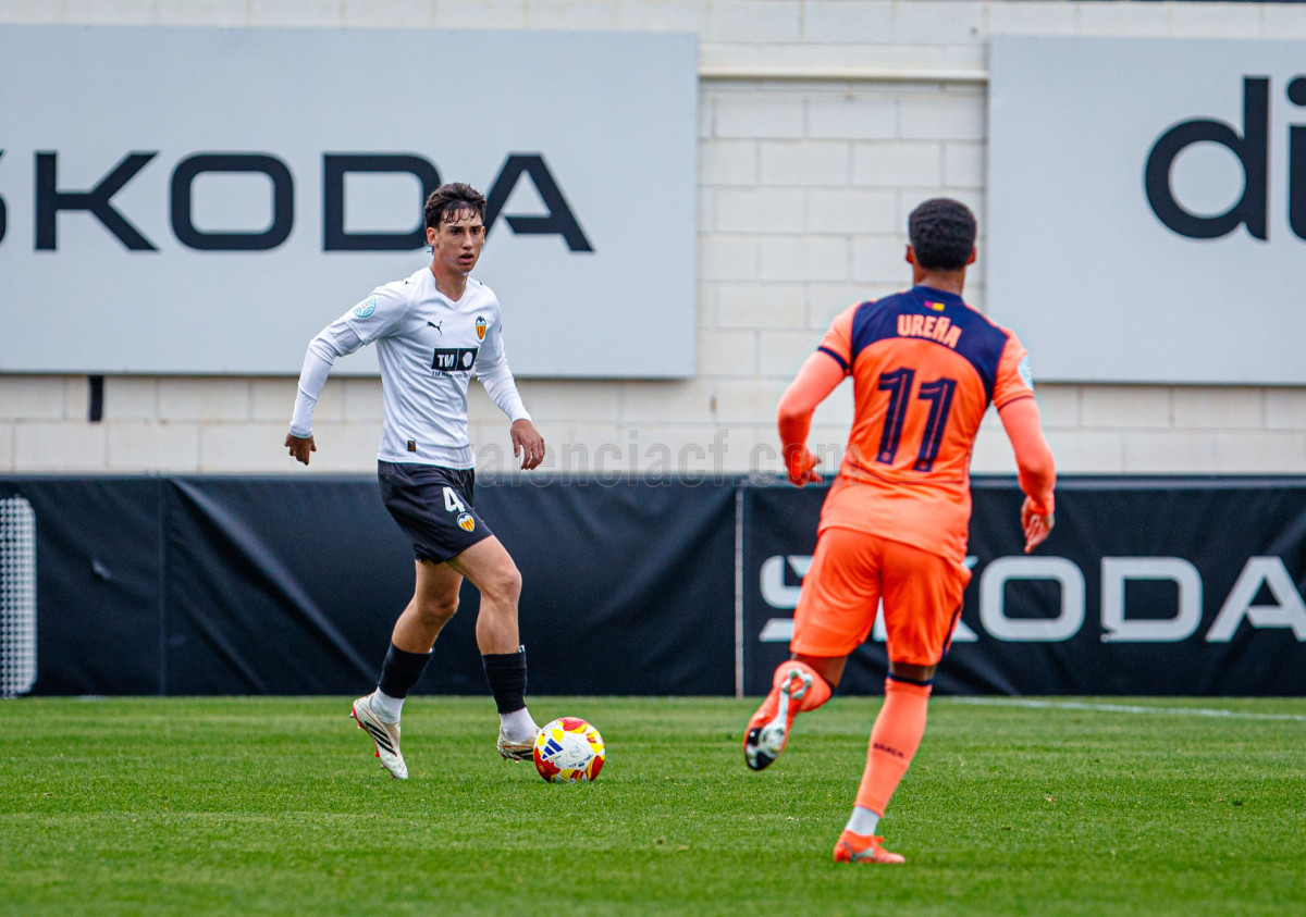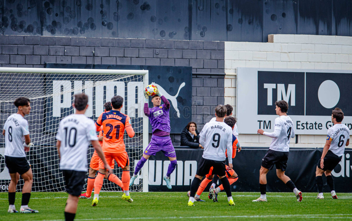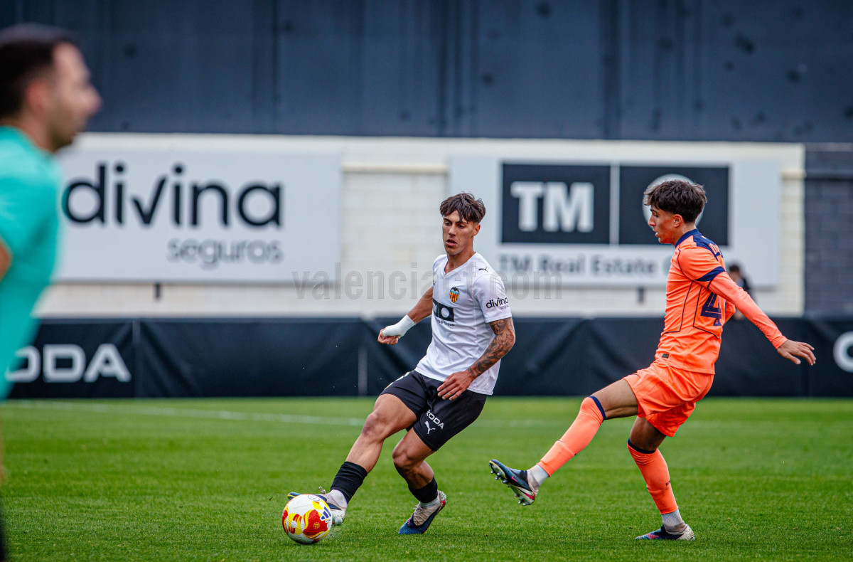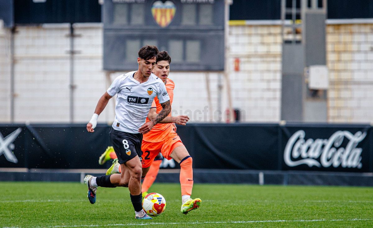 En los segundos 45 minutos el VCF Mestalla quiso asumir mayor protagonismo con el balón y Miguel Ángel Angulo dio entrada a Mario Guilabert de inicio. El filial acumuló más posesión y presencia en campo contrario y tuvo en un lanzamiento de rosca de Víctor JR una buena opción para haberse adelantado.