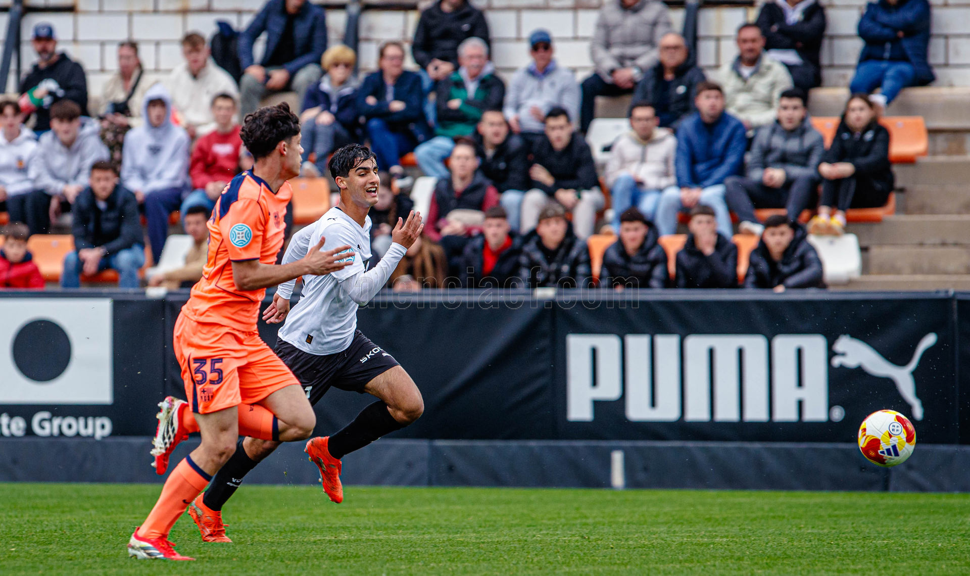 El esfuerzo del VCF Mestalla no encontró premio y se vio castigado en los minutos finales con el tanto del FC Barcelona B en una buena acción por la izquierda de Shane Kluivert que acabó rematando de cabeza Delgado para batir a Vicent Abril.
