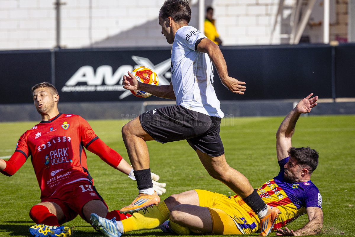 Con esa mayor ventaja en el marcado el VCF Mestalla puso un punto de pausa en el partido, con posesiones más largas, ante un CE Andratx que seguía con la misma disposición y que en sus llegadas al área valencianista se encontraba siempre con la respuesta firme de Vicent Abril.