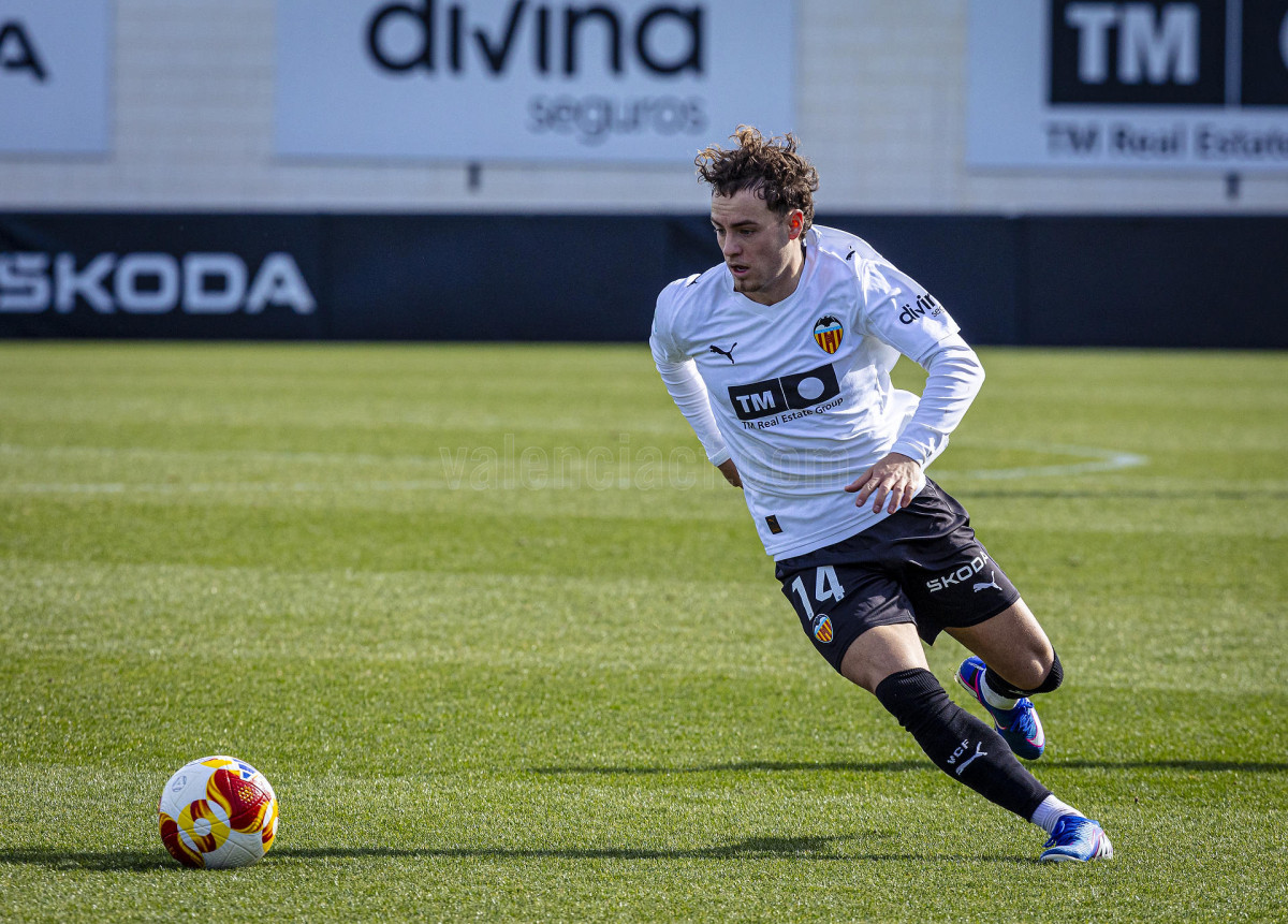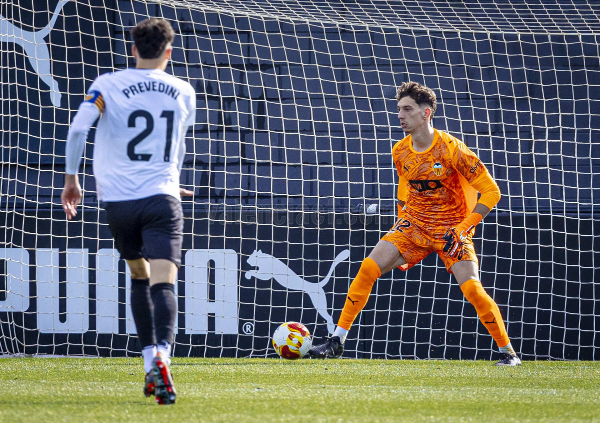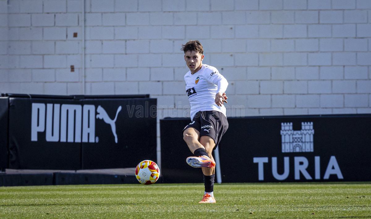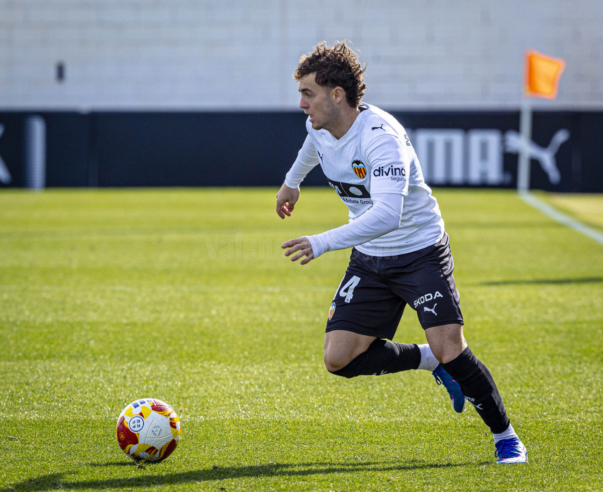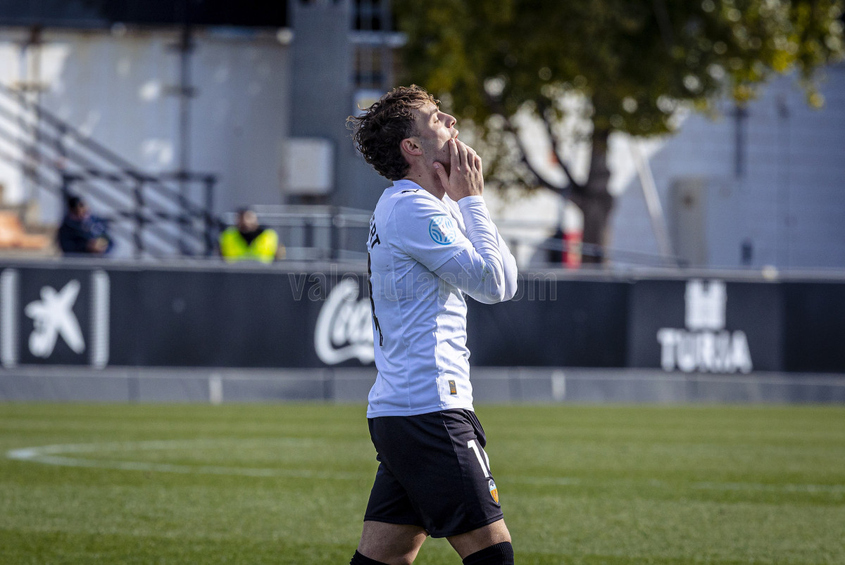 Sería sin embargo por la izquierda donde llegaron las dos ocasiones más claras, primero en un centro tenso de Marcos Navarro que se paseó por el área pequeña, y posteriormente en un lanzamiento de Guilabert desde la frontal que salió rozando la escuadra. Poco a poco el VCF Mestalla se fue sintiendo algo más cómodo en el terreno de juego y teniendo mayor presencia en área rival y sin sufrir en exceso en una línea defensiva formada esta vez por Fontanet y Hugo Fernández como pareja de centrales.