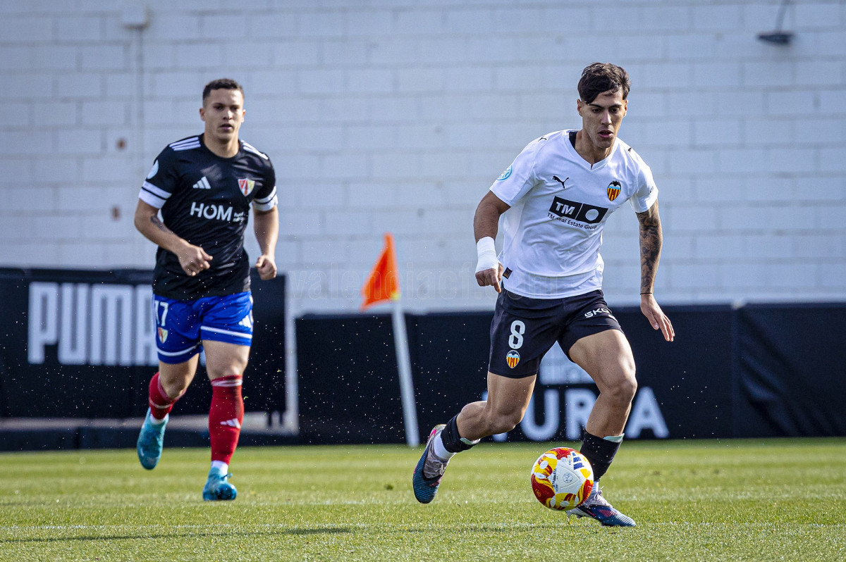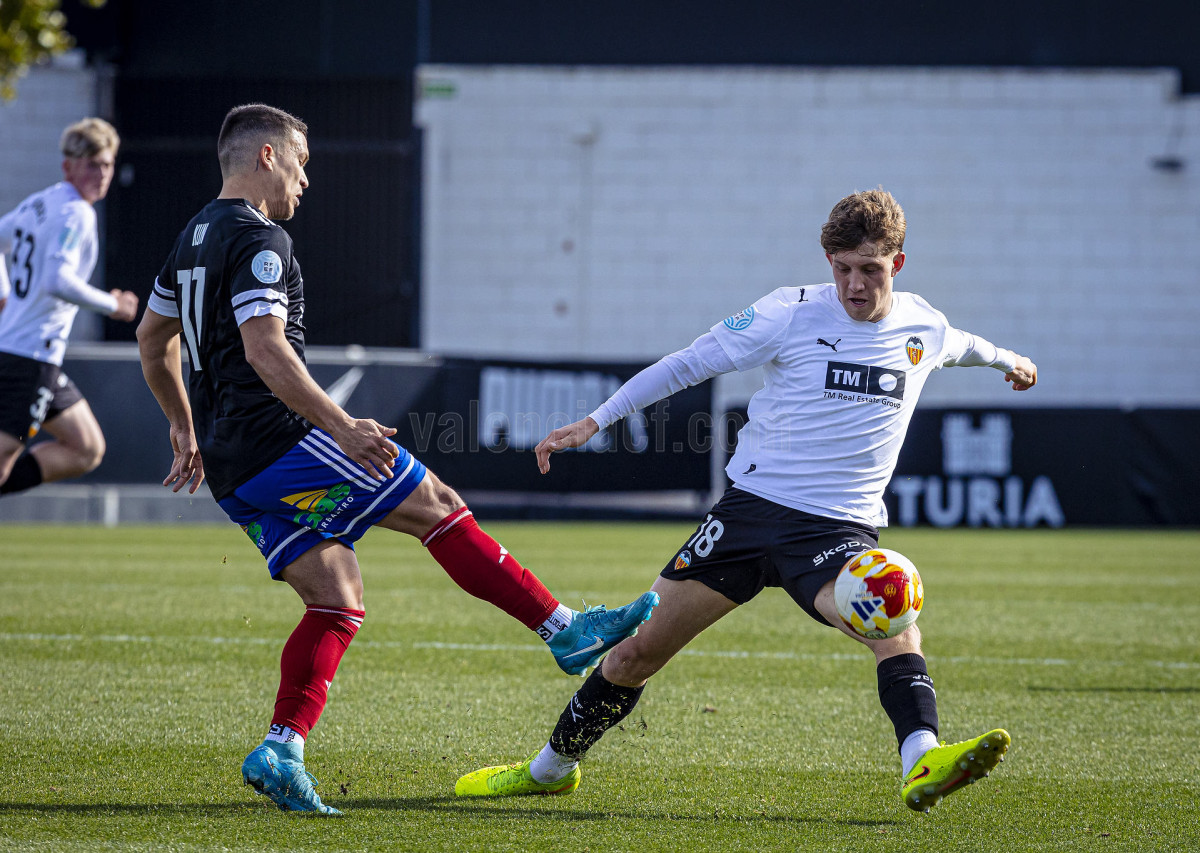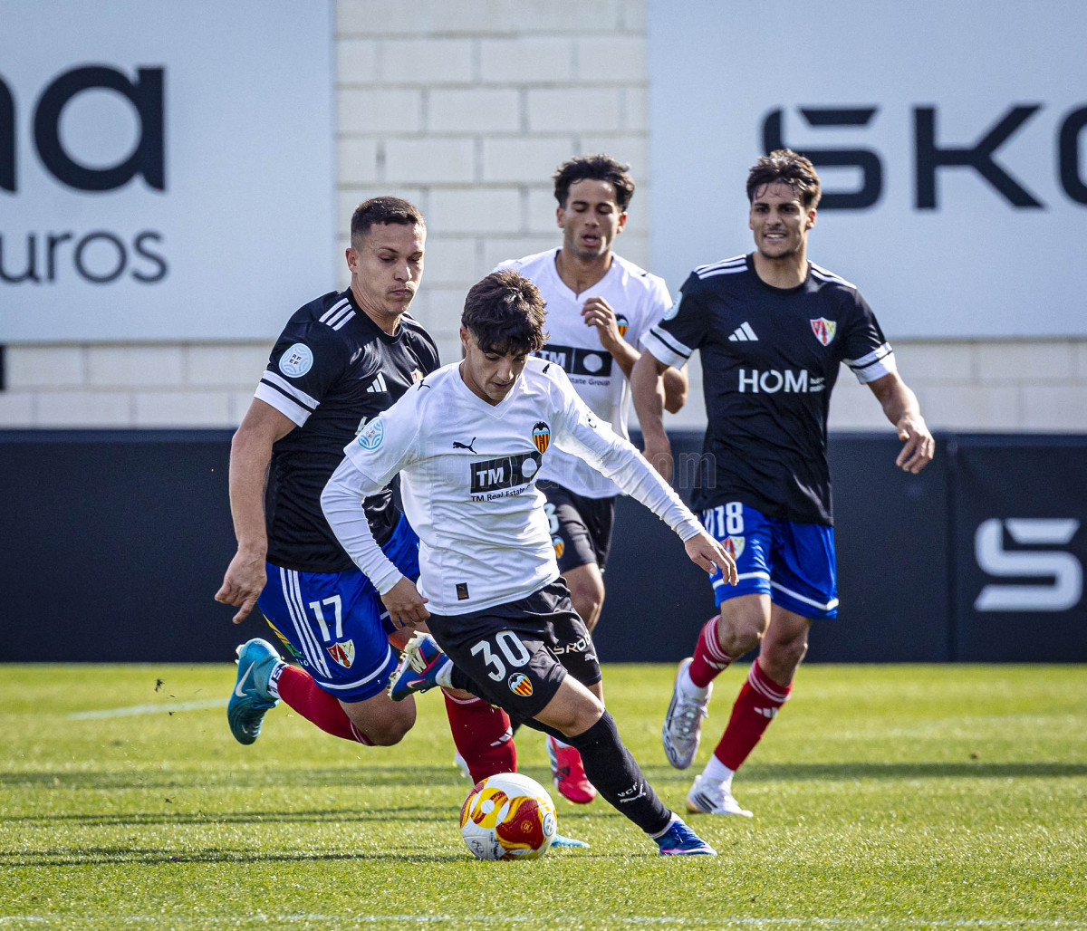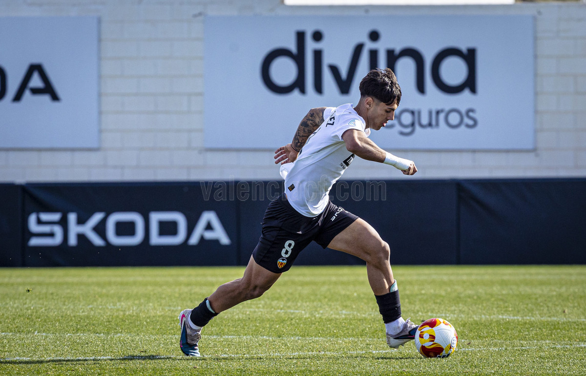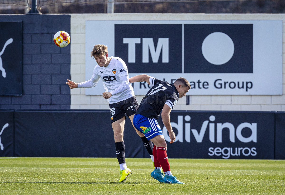 Sería sin embargo por la izquierda donde llegaron las dos ocasiones más claras, primero en un centro tenso de Marcos Navarro que se paseó por el área pequeña, y posteriormente en un lanzamiento de Guilabert desde la frontal que salió rozando la escuadra. Poco a poco el VCF Mestalla se fue sintiendo algo más cómodo en el terreno de juego y teniendo mayor presencia en área rival y sin sufrir en exceso en una línea defensiva formada esta vez por Fontanet y Hugo Fernández como pareja de centrales.