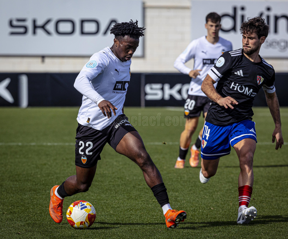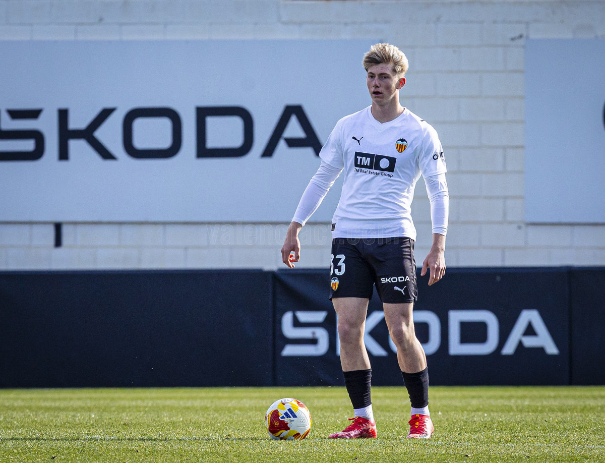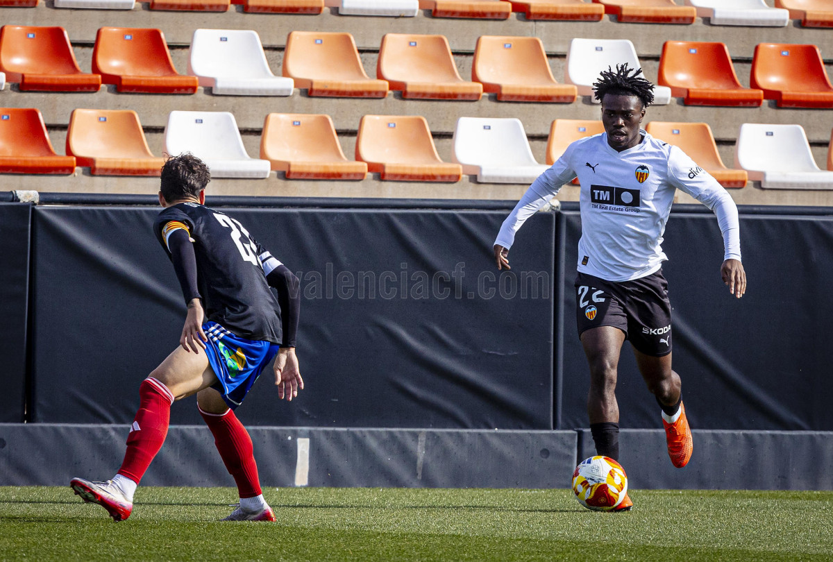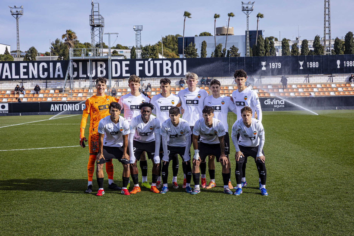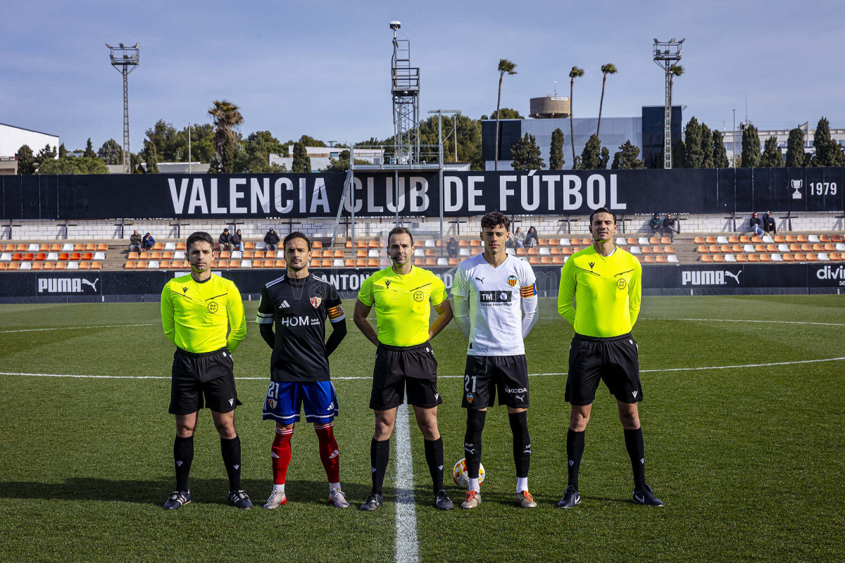 Sería sin embargo por la izquierda donde llegaron las dos ocasiones más claras, primero en un centro tenso de Marcos Navarro que se paseó por el área pequeña, y posteriormente en un lanzamiento de Guilabert desde la frontal que salió rozando la escuadra. Poco a poco el VCF Mestalla se fue sintiendo algo más cómodo en el terreno de juego y teniendo mayor presencia en área rival y sin sufrir en exceso en una línea defensiva formada esta vez por Fontanet y Hugo Fernández como pareja de centrales.