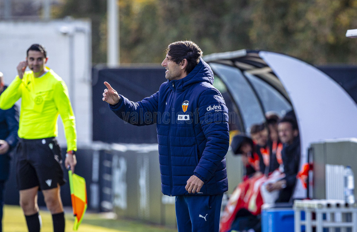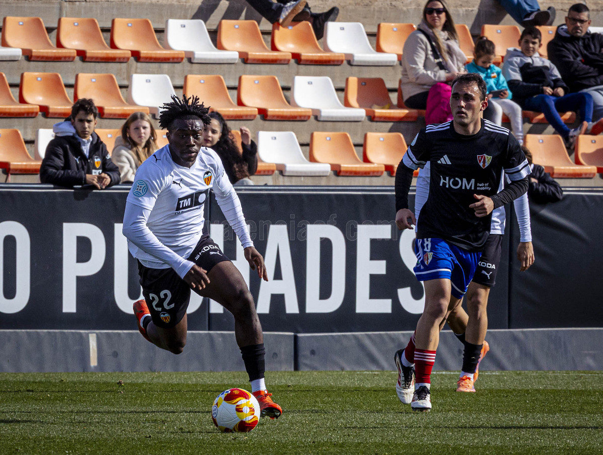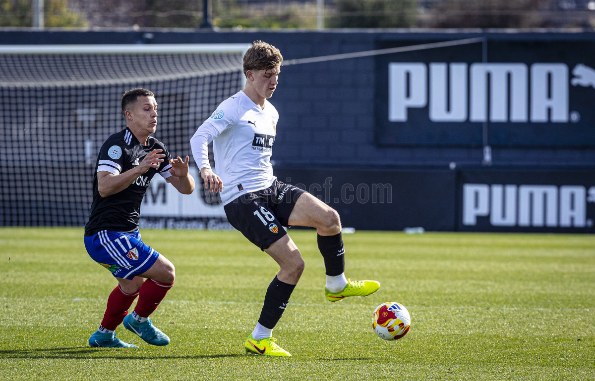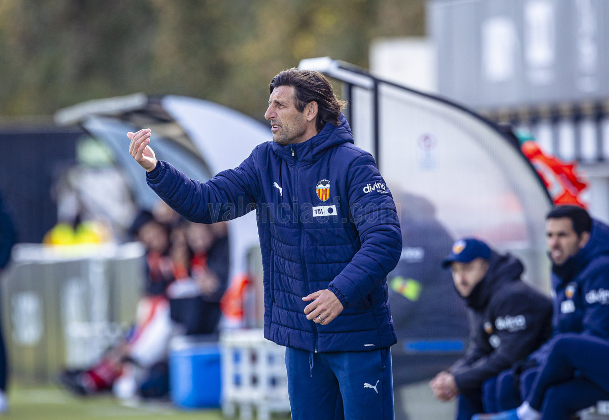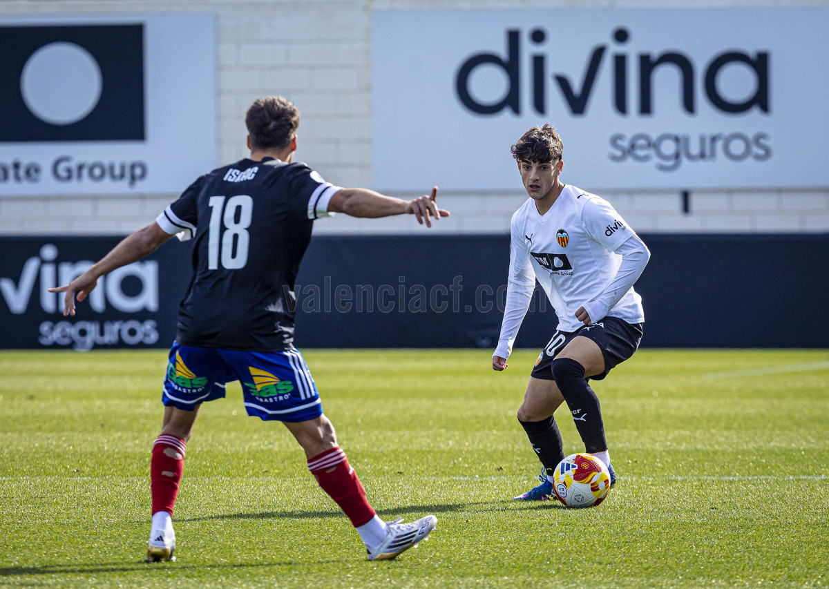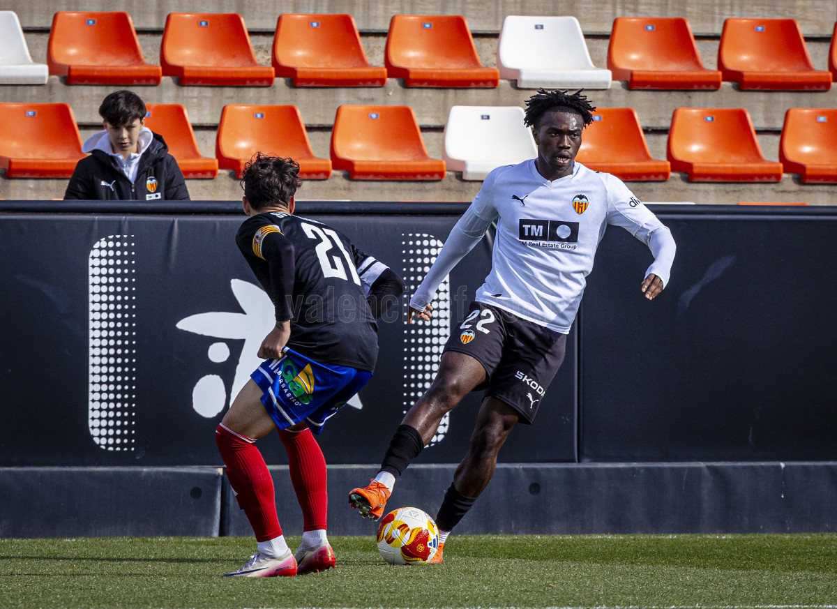 Sería sin embargo por la izquierda donde llegaron las dos ocasiones más claras, primero en un centro tenso de Marcos Navarro que se paseó por el área pequeña, y posteriormente en un lanzamiento de Guilabert desde la frontal que salió rozando la escuadra. Poco a poco el VCF Mestalla se fue sintiendo algo más cómodo en el terreno de juego y teniendo mayor presencia en área rival y sin sufrir en exceso en una línea defensiva formada esta vez por Fontanet y Hugo Fernández como pareja de centrales.