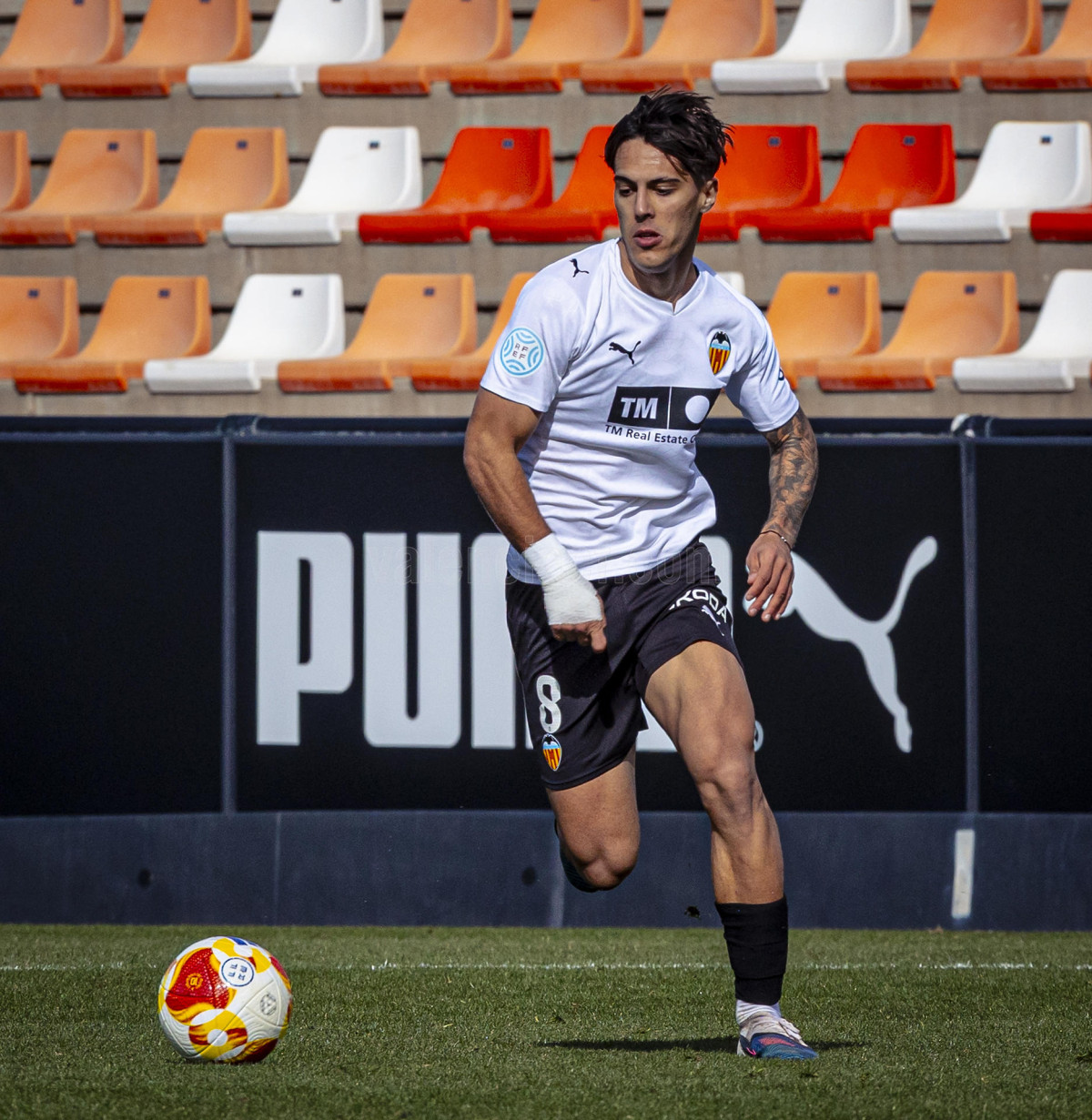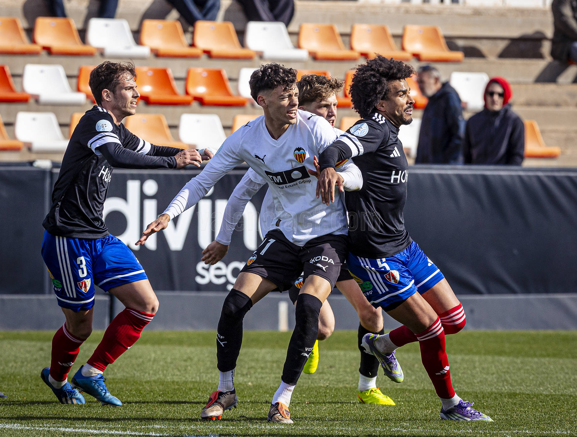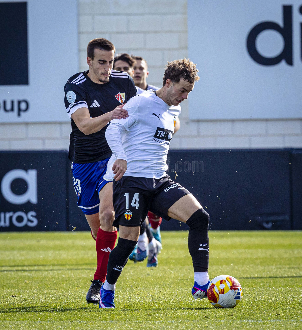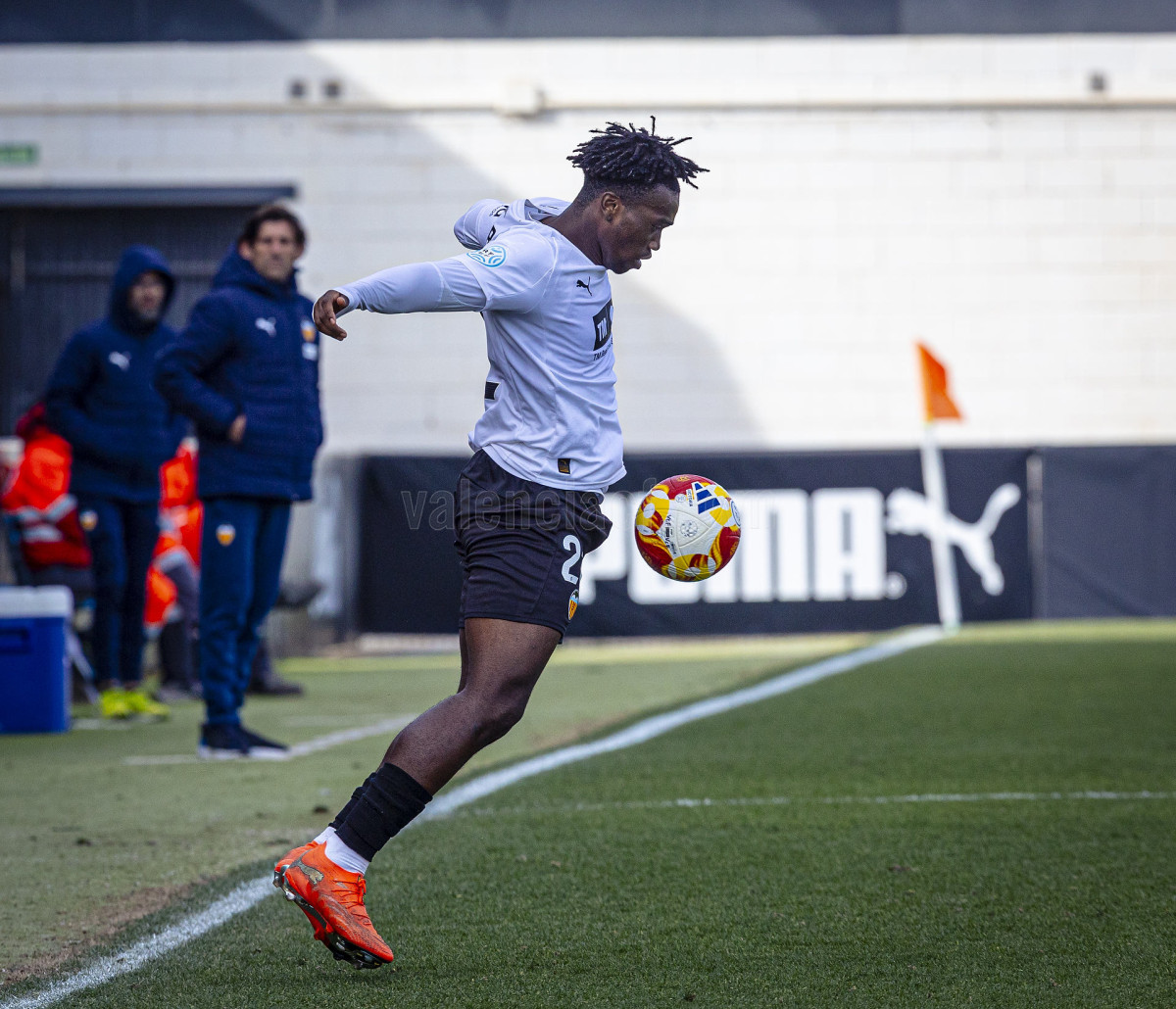 Sería sin embargo por la izquierda donde llegaron las dos ocasiones más claras, primero en un centro tenso de Marcos Navarro que se paseó por el área pequeña, y posteriormente en un lanzamiento de Guilabert desde la frontal que salió rozando la escuadra. Poco a poco el VCF Mestalla se fue sintiendo algo más cómodo en el terreno de juego y teniendo mayor presencia en área rival y sin sufrir en exceso en una línea defensiva formada esta vez por Fontanet y Hugo Fernández como pareja de centrales.