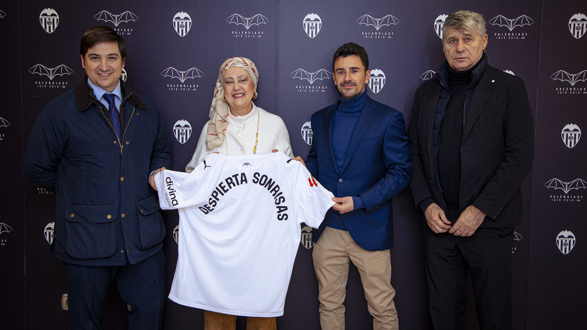 A la Sala Juan Cruz Sol de la Llotja VIP de Mestalla, la directora de la Fundació VCF, Inma Ibáñez, i l'ambaixador del Valencia CF Miguel Tendillo van rebre a Jorge Estornell, responsable d'Administració i Projectes de 'Despierta Sonrisas', i a Andrés Barcia, responsable de Comunicació i Relacions Públiques d'esta.