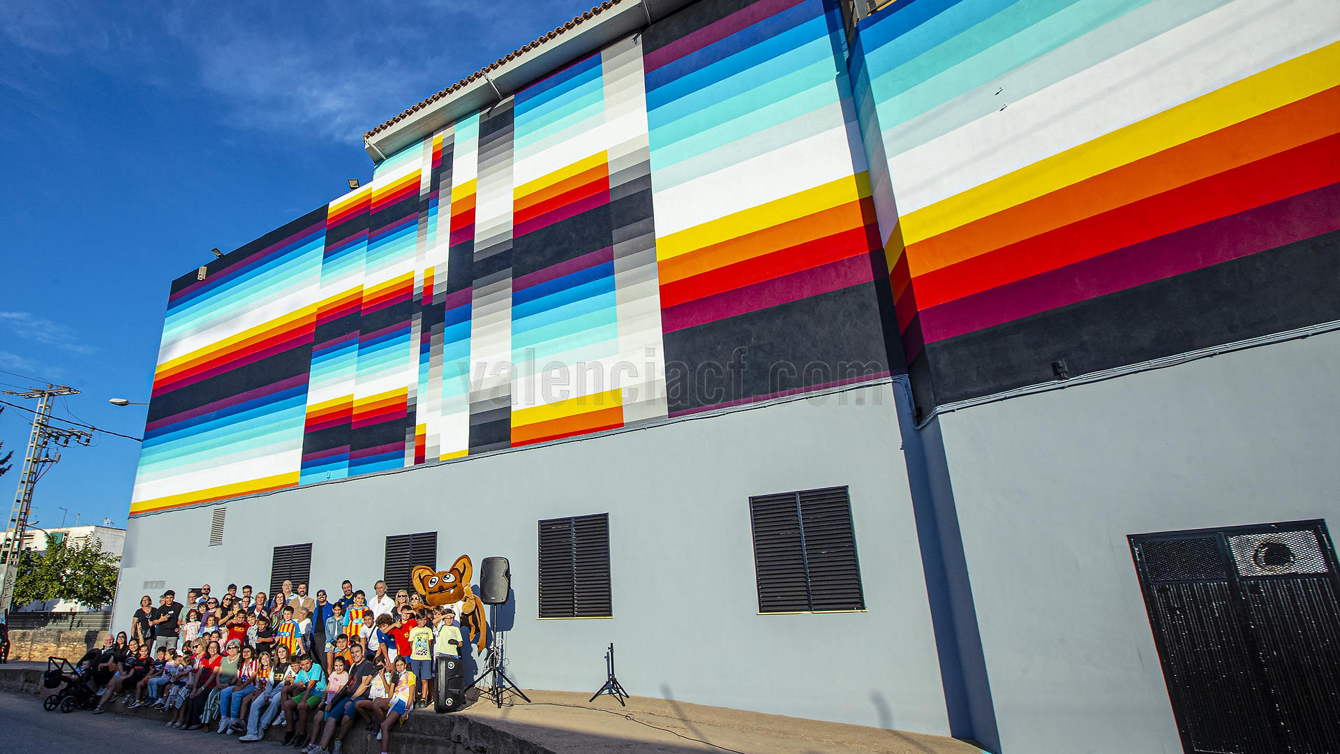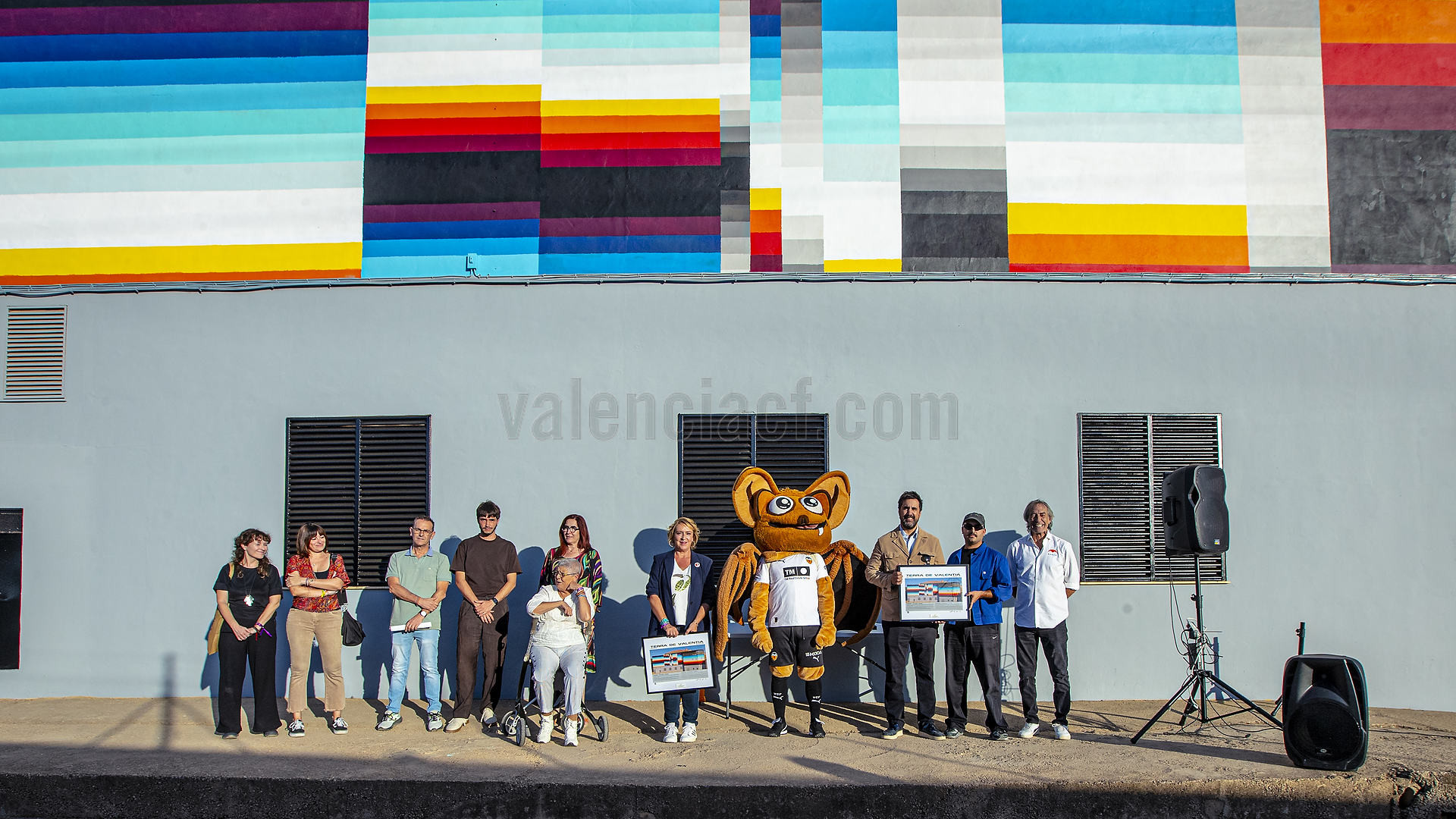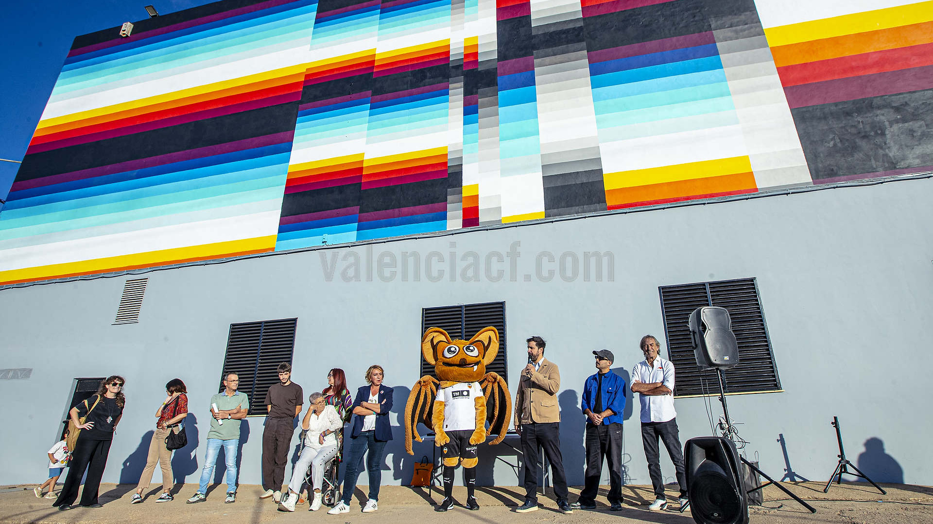 En Benetússer, la inauguración de la obra se celebró este 25 de septiembre, con la participación de muchos vecinos, grandes y pequeños, la mascota del Valencia CF, miembros del equipo de Felipe Pantone, la alcaldesa de la localidad, Eva Ángela Sanz, el embajador del Valencia CF Ricardo Arias y el director general, Javier Solís.