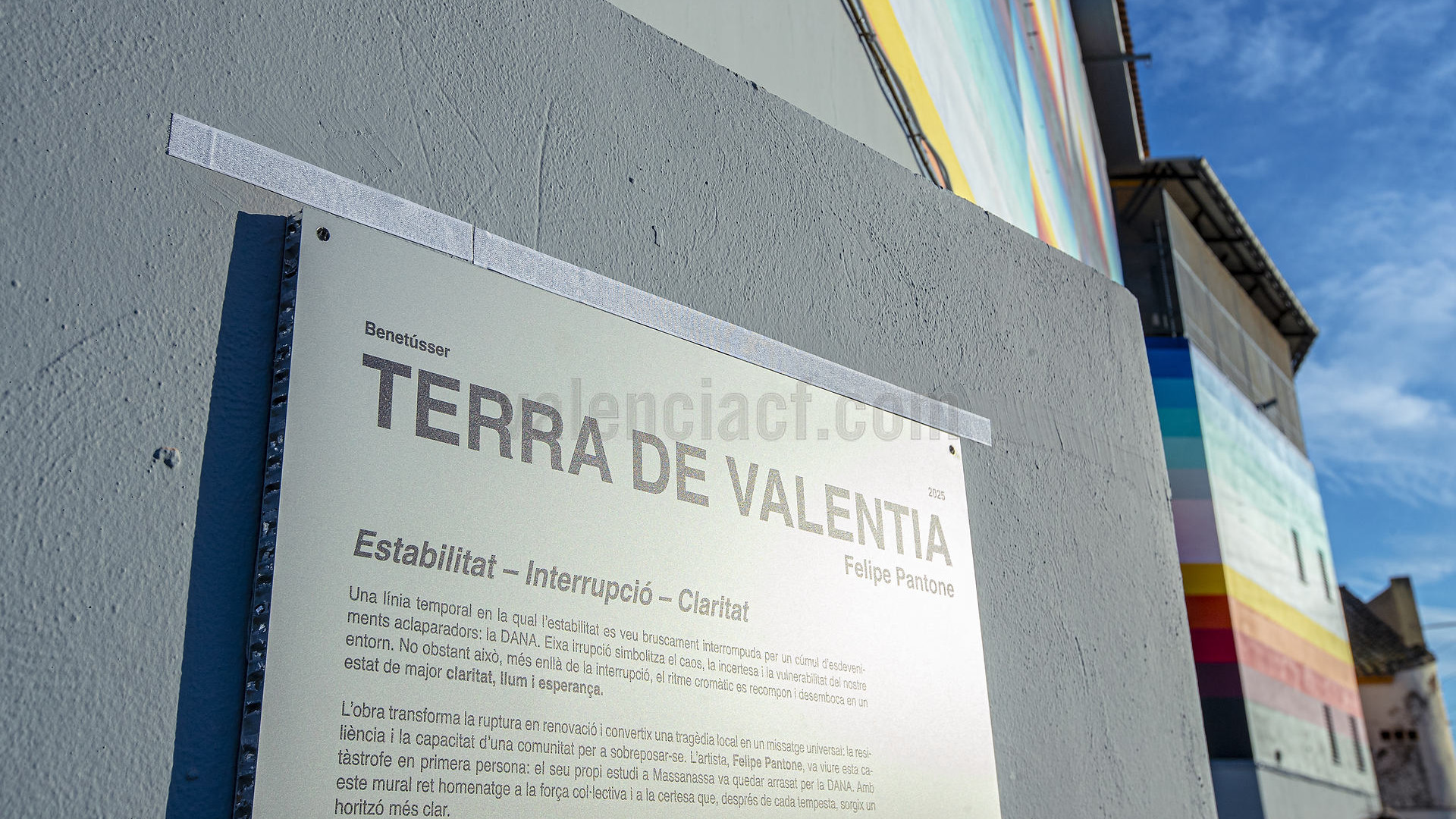Benetússer ya cuenta con su mural de la IV Ruta de Arte Urbano VCF, siendo el primero de esta edición que se inaugura. En el contexto de la trágica DANA del 29 de octubre de 2024, la obra, del artista internacional Felipe Pantone, rinde homenaje a la fuerza colectiva y a la certeza de que, tras cada tormenta, surge un horizonte más claro.