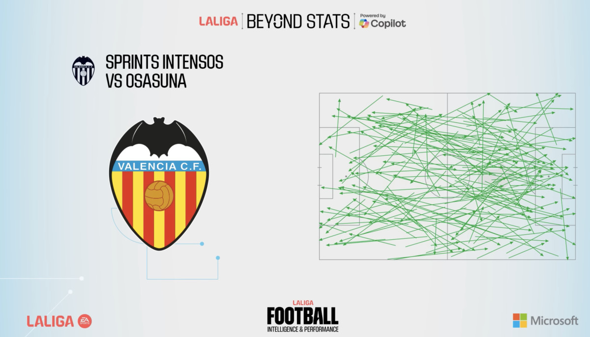 El combinat que dirigeix el nostre entrenador Carlos Corberán és l'equip de LALIGA EA SPORTS 25-26 amb millor faig una mitjana de de metres recorreguts per acció a màxima intensitat. El Valencia CF encapçala este ránking -realitzat per LALIGA Beyond Stats- amb 20,59m a més de 28km/h. Un exemple de potència i intensitat.