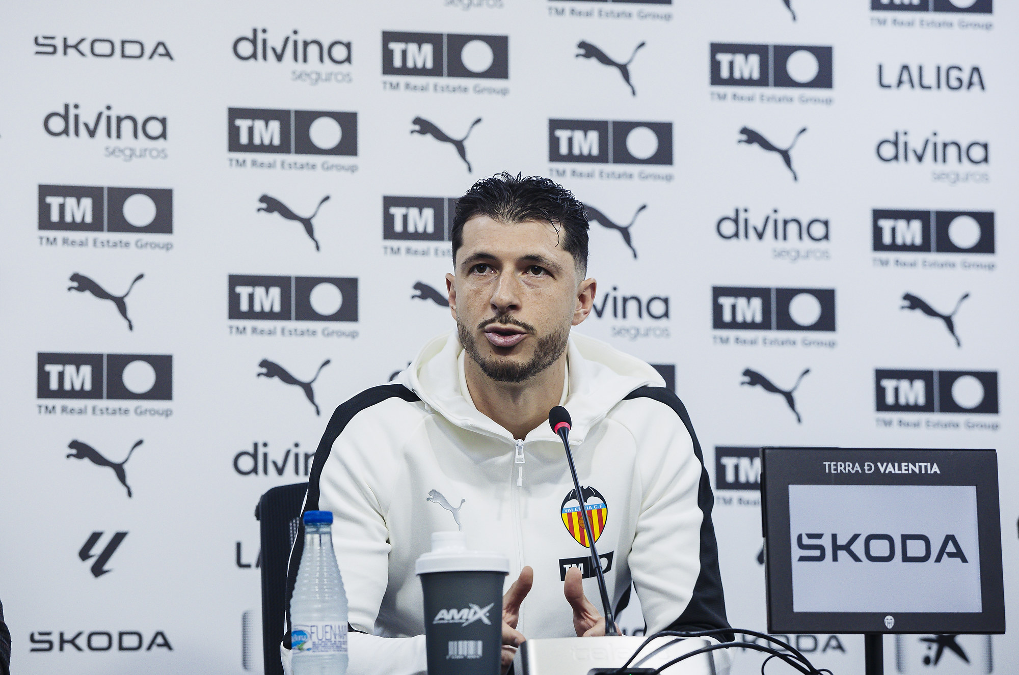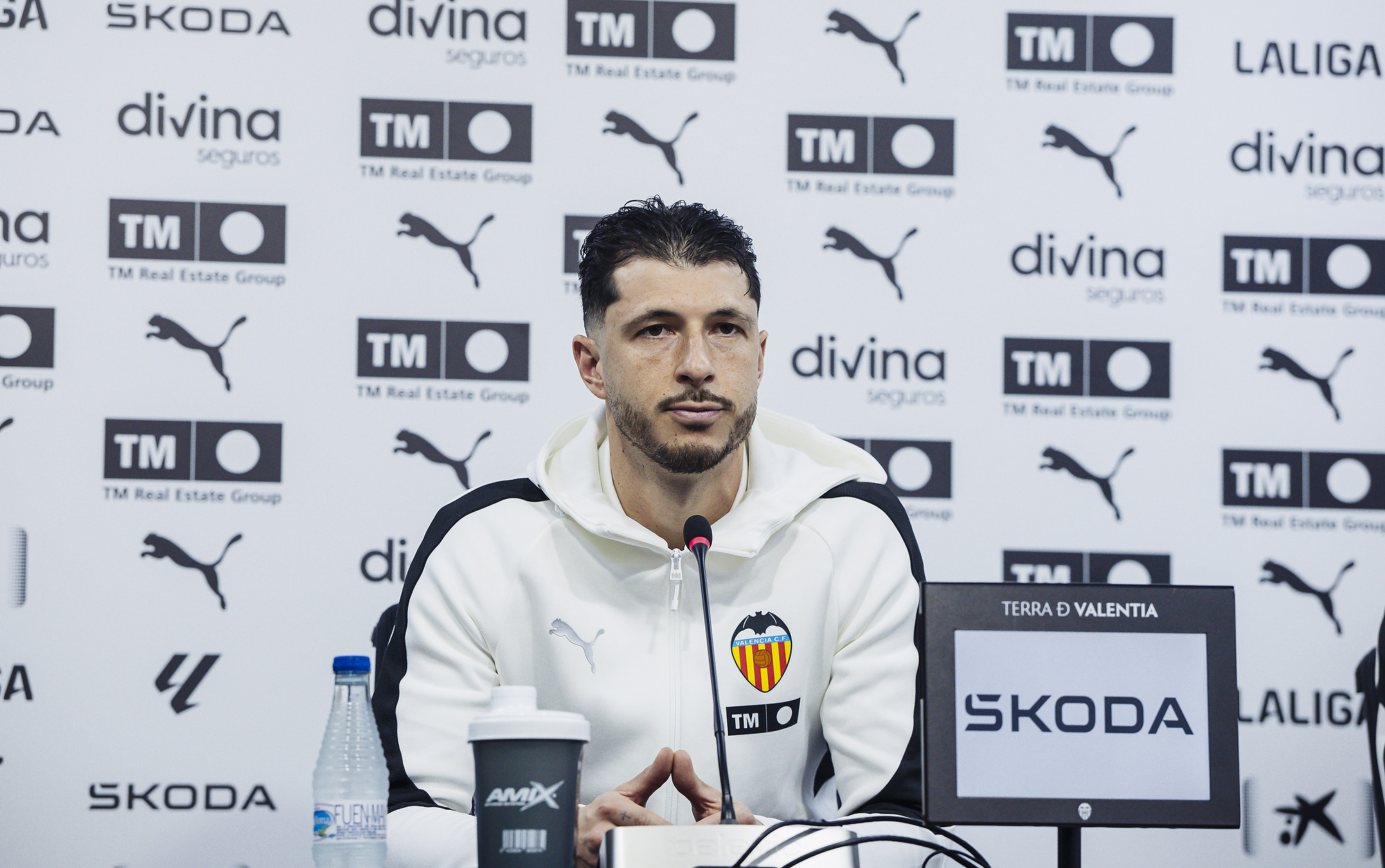 “Estoy muy contento y feliz y lo voy a tratar de demostrar en el día a día y en el campo, tenía ganas de volver a jugar en LALIGA y venir al Valencia CF. Desde el momento en el que empezó la negociación y la posibilidad, estuve muy contento de venir Hice fuerza y tenía ganas de volver. En los papeles están estos meses, pero me encantaría hacer las cosas bien aquí para que el Club quiera que me quede y yo querer quedarme también”.