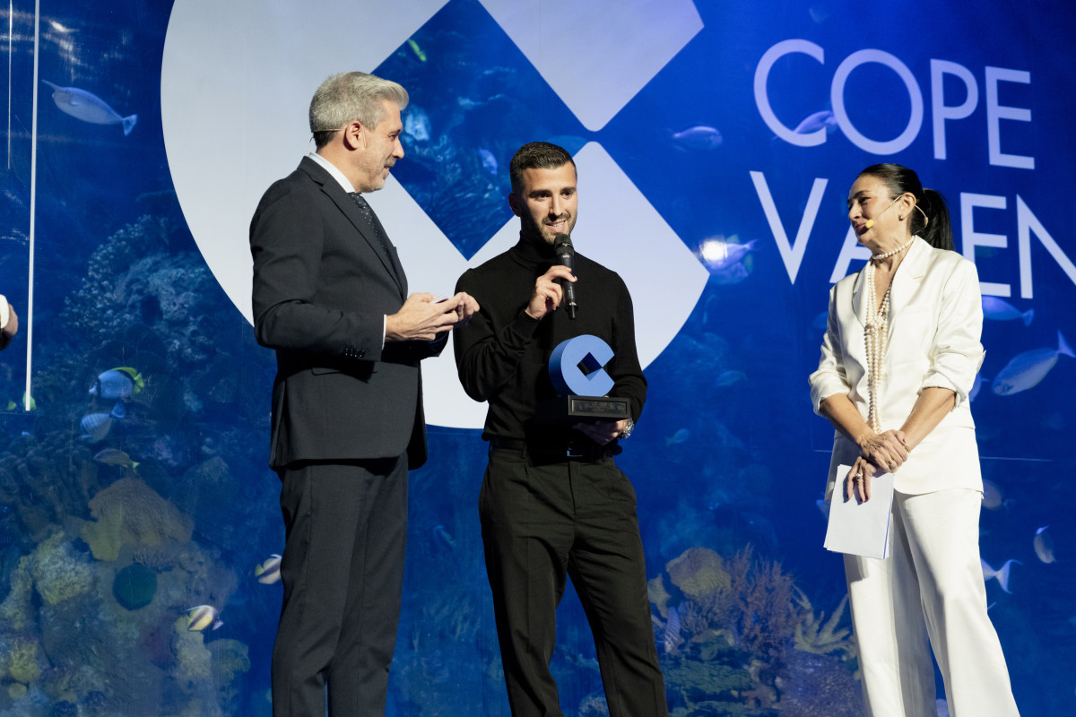 Valencia CF captain José Luis Gayà received, at the COPE Valencia 60th Anniversary Gala, an award in recognition of his long career at the Club. The General Director of the Valencian entity, Javier Solís, also attended the event.