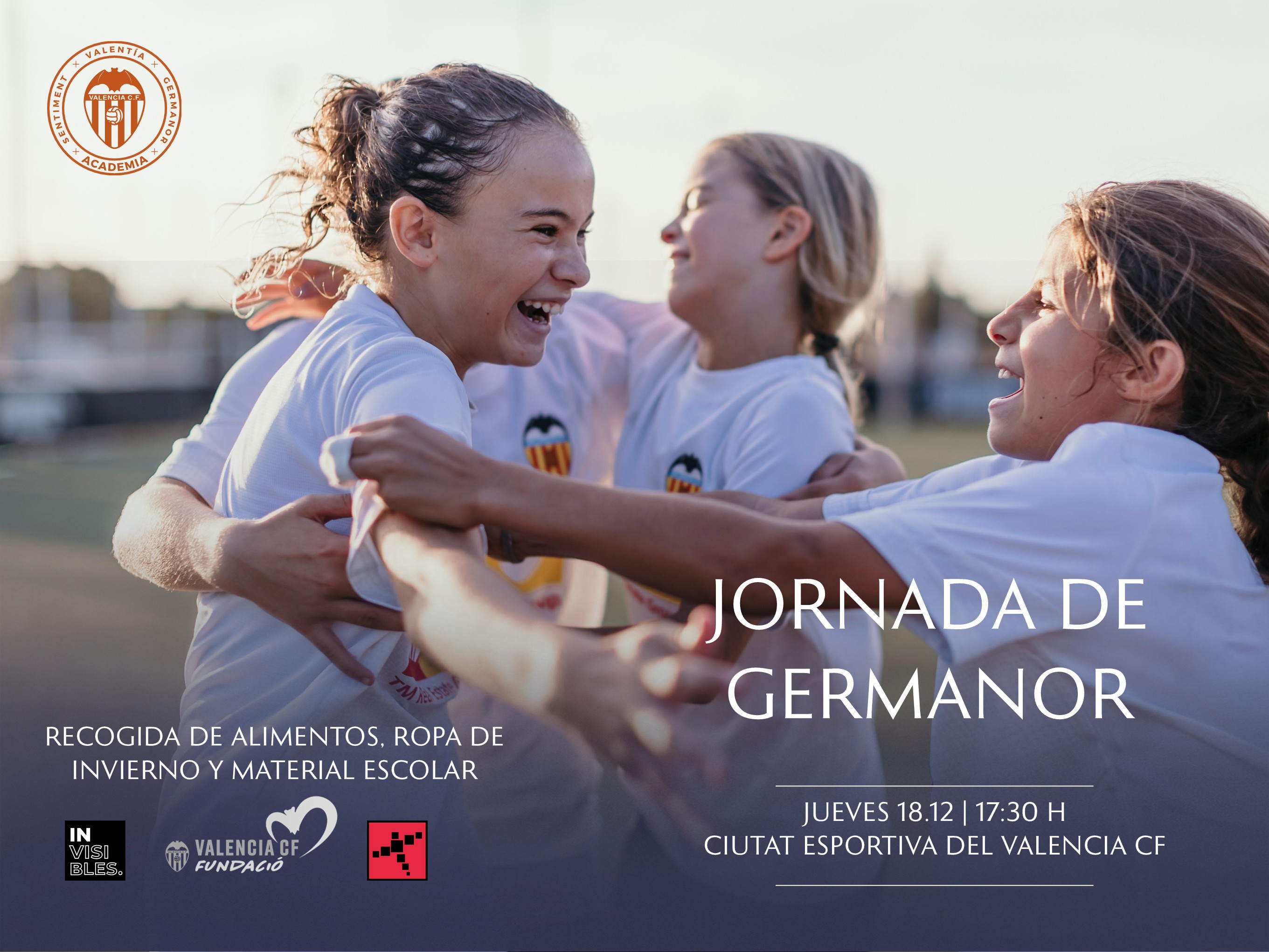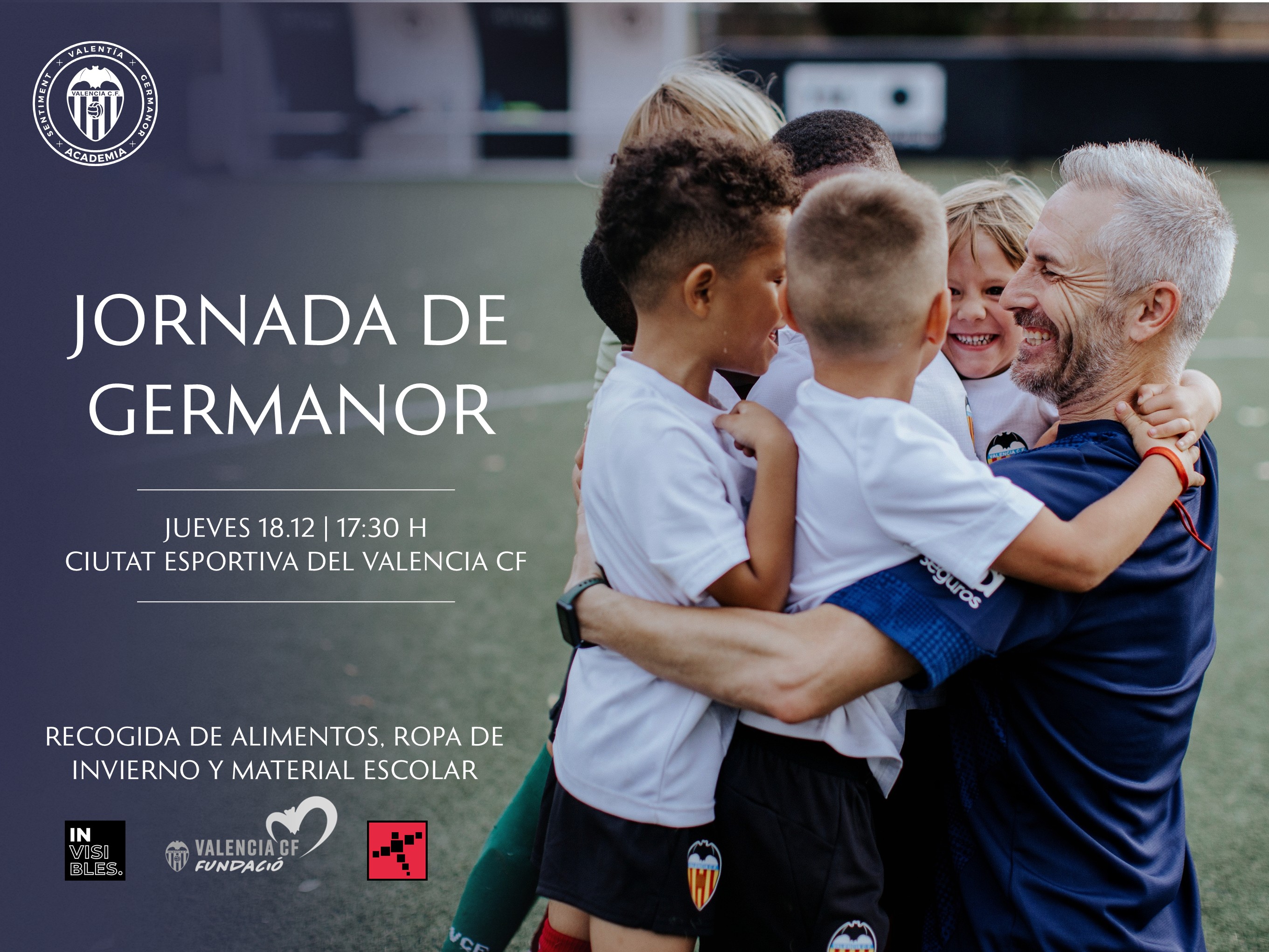 Una gran jornada de Germanor para despedir el 2025. Este jueves 18 de diciembre los más pequeños de la Academia VCF compartirán en la Ciutat Esportiva del ValenciaCF una última sesión de entrenamiento diferente, divertida y solidaria en laque participarán los equipos de Fútbol 8 masculinos y Femeninos, así como el VCF Infantil Femenino