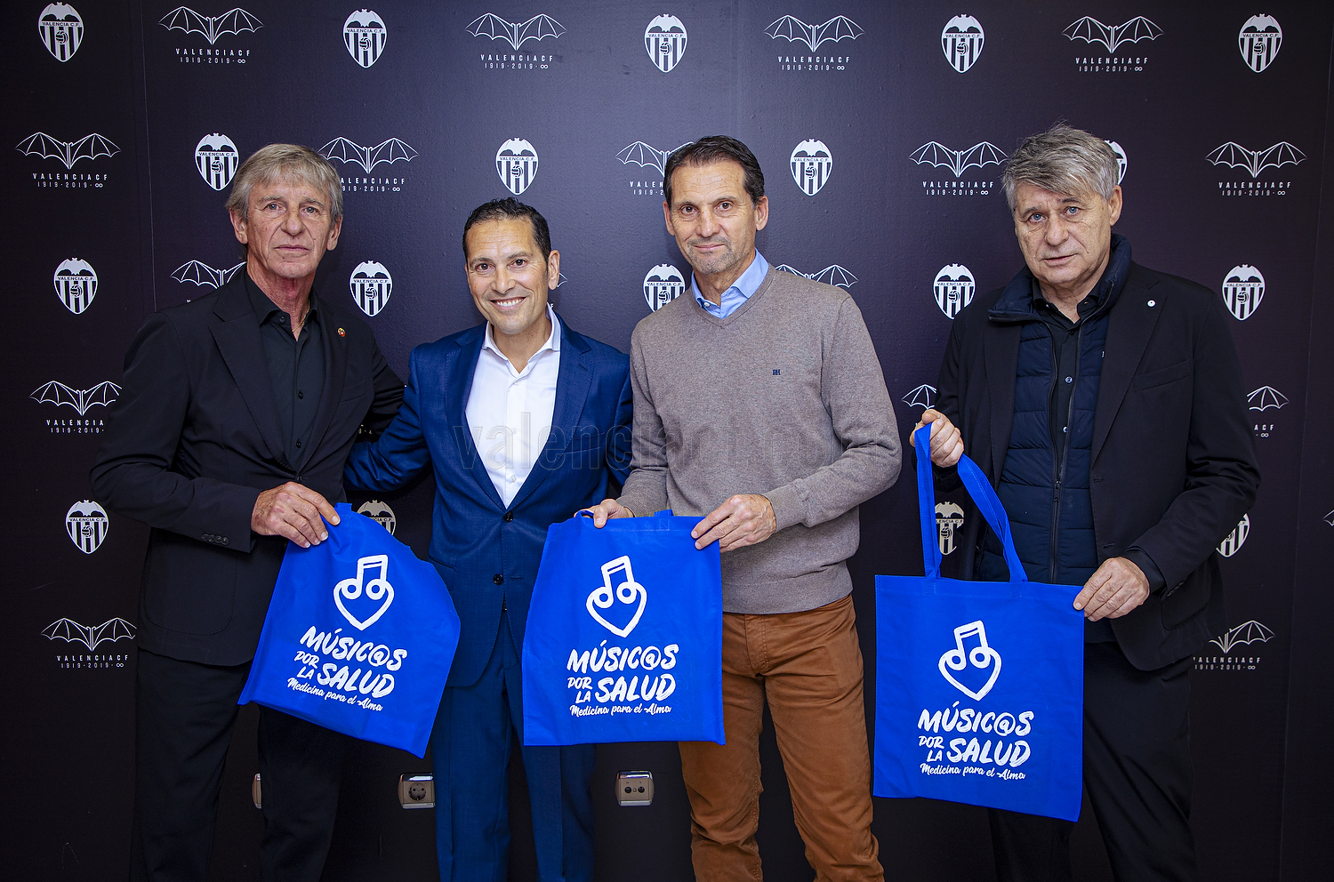 En la Sala Juan Cruz Sol del Camp de Mestalla, el presidente de 'Músicos por la Salud', José Guillermo Fernández Giner, fue recibido por los embajadores del Valencia CF Miguel Ángel Bossio y Miguel Tendillo, el director de Marketing y Comercial del Club, Jorge García, y el presidente de la Asociación Futbolistas VCF, Fernando Giner.
