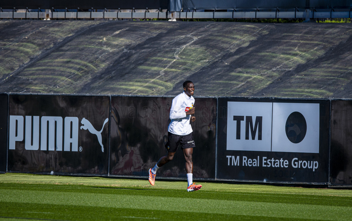 Diakhaby torna a exercitar-se a la gespa de la Ciutat Esportiva de Paterna i Ramazani a fer exercicis amb baló