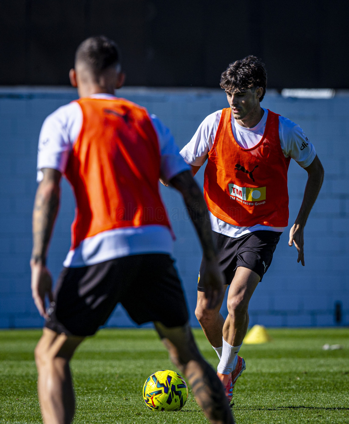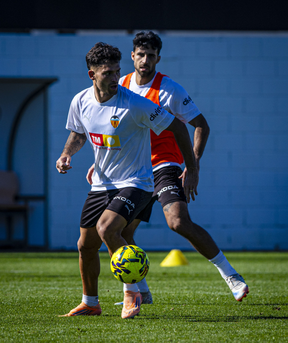 El primer equip masculí del Valencia CF ja s'ha exercitat i ha començat una nova setmana de treball amb el focus posat en el pròxim partit de LALIGA EA SPORTS 25-26 enfront del Reial Betis. Una sessió en la qual Mouctar Diakhaby ha tornat a entrenar a la gespa de la Ciutat Esportiva de Paterna i Ramazani ha començat a fer exercicis amb baló.