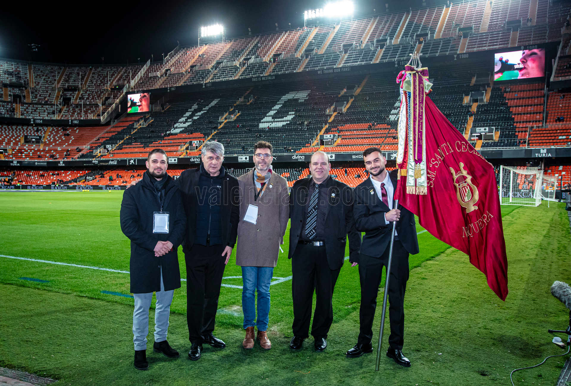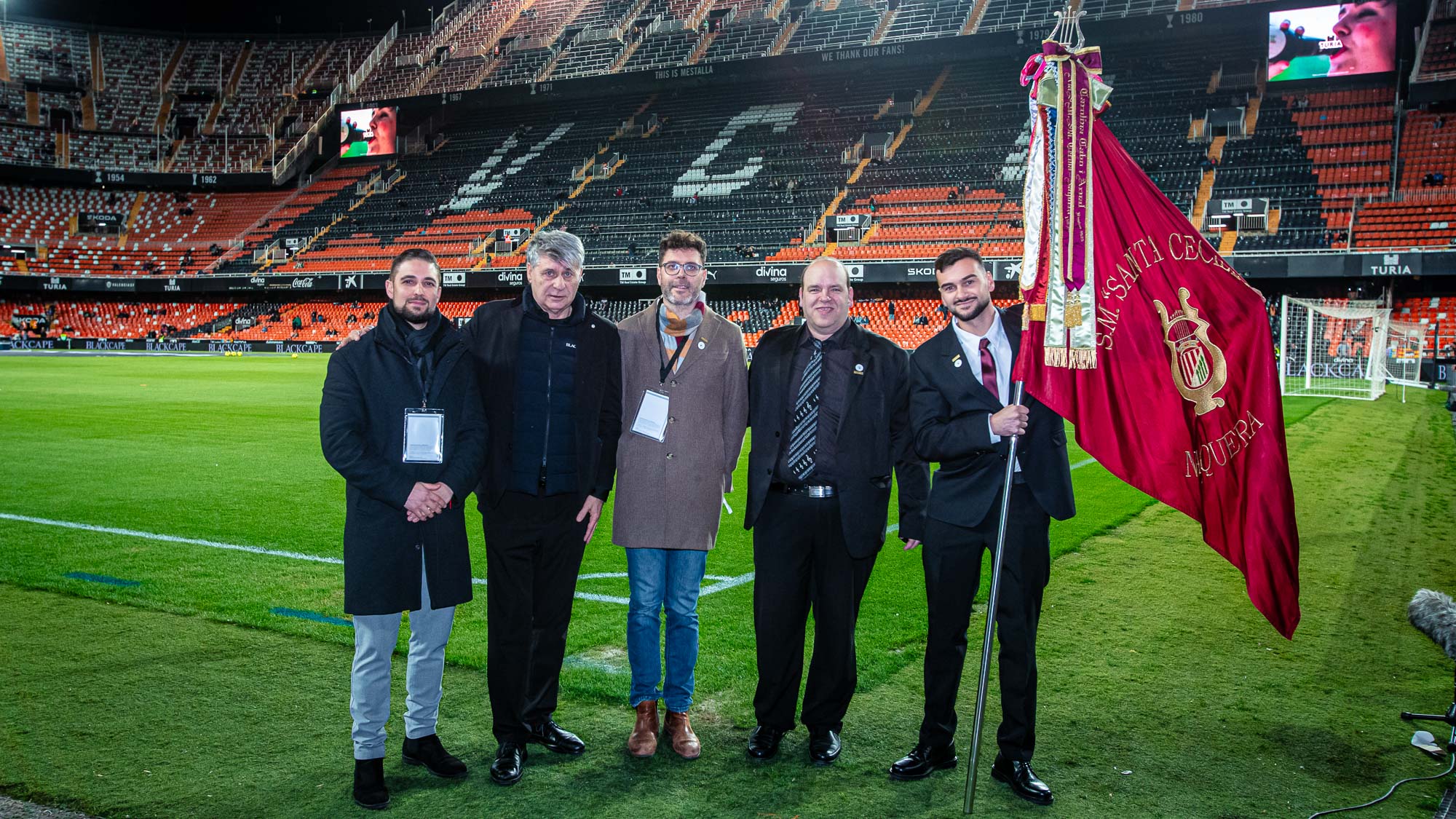 Este sábado, con motivo del partido Valencia CF – Deportivo Alavés de la Jornada 27 de LaLiga EA Sports 2025-26, nos ha visitado en el Camp de Mestalla la Societat Musical Santa Cecília de Nàquera.