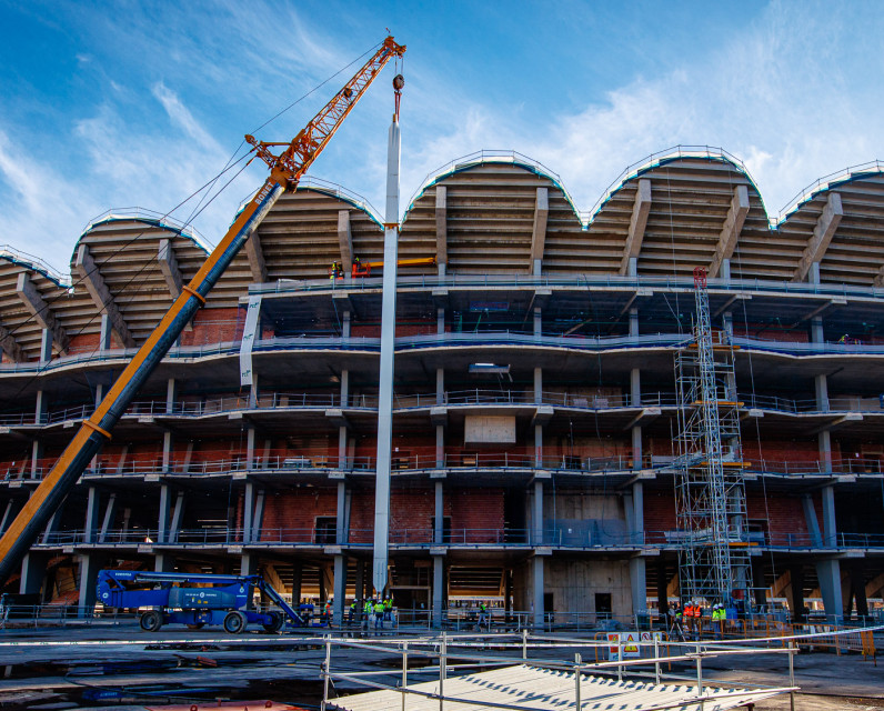 El Nou Mestalla inicia el muntatge dels pilars exteriors que sostindran la coberta