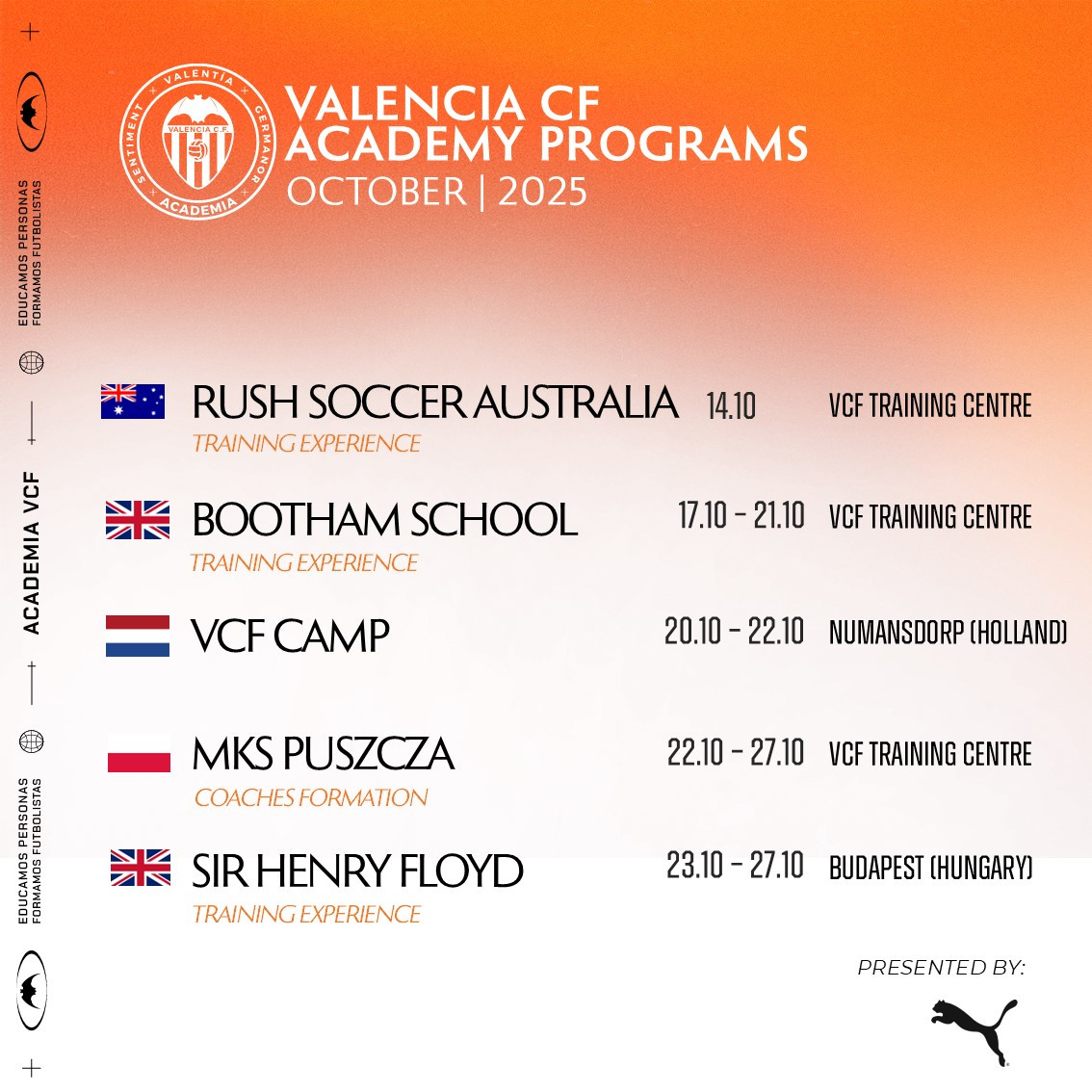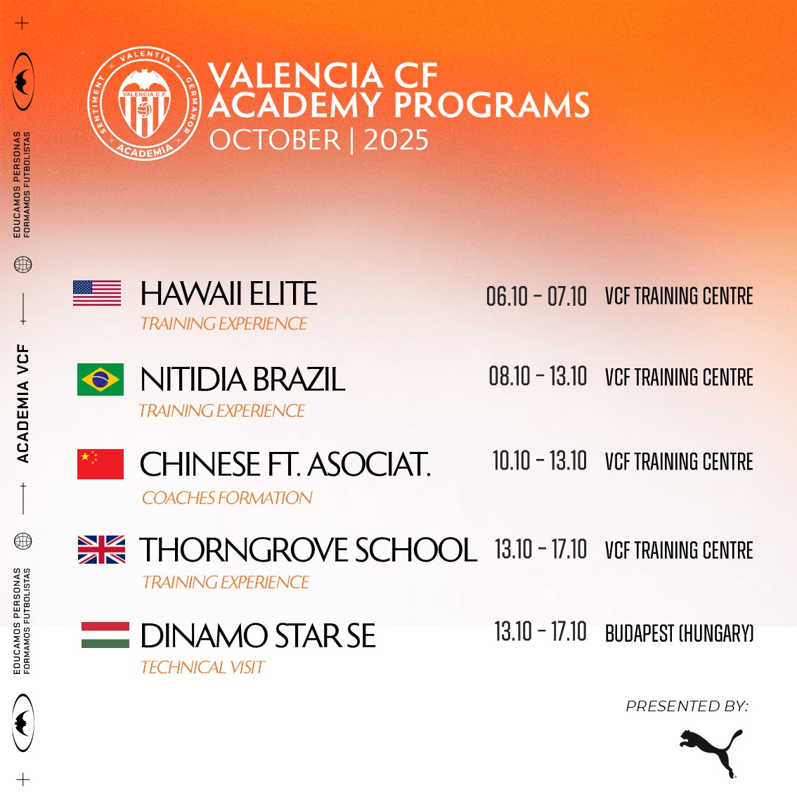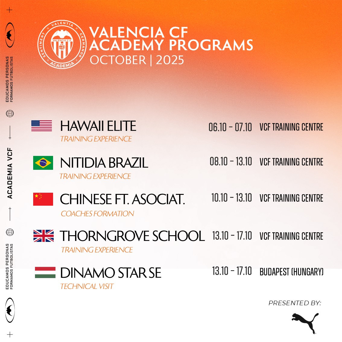 Consulta aquí las actividades programadas de los Valencia CF Academy Programs para este mes de Octubre en distintos países del mundo