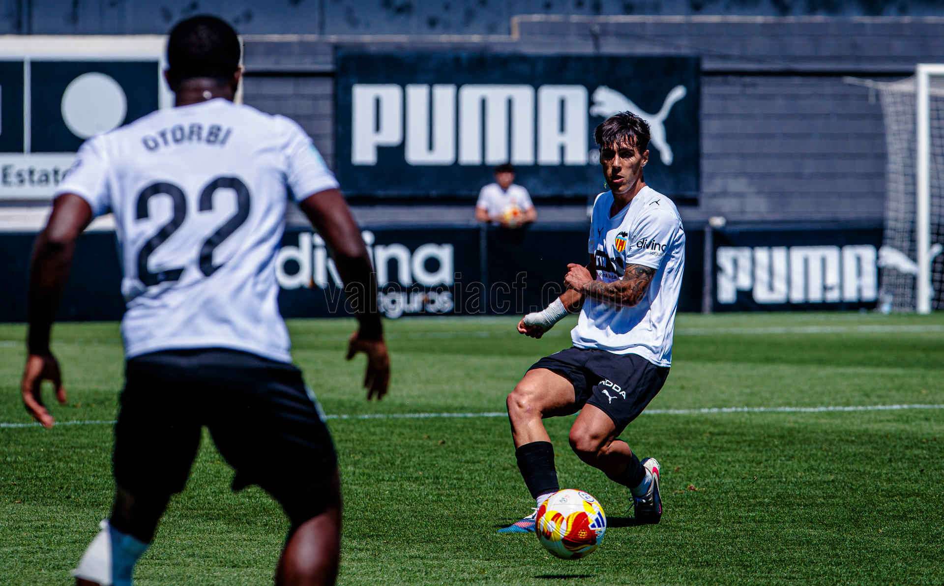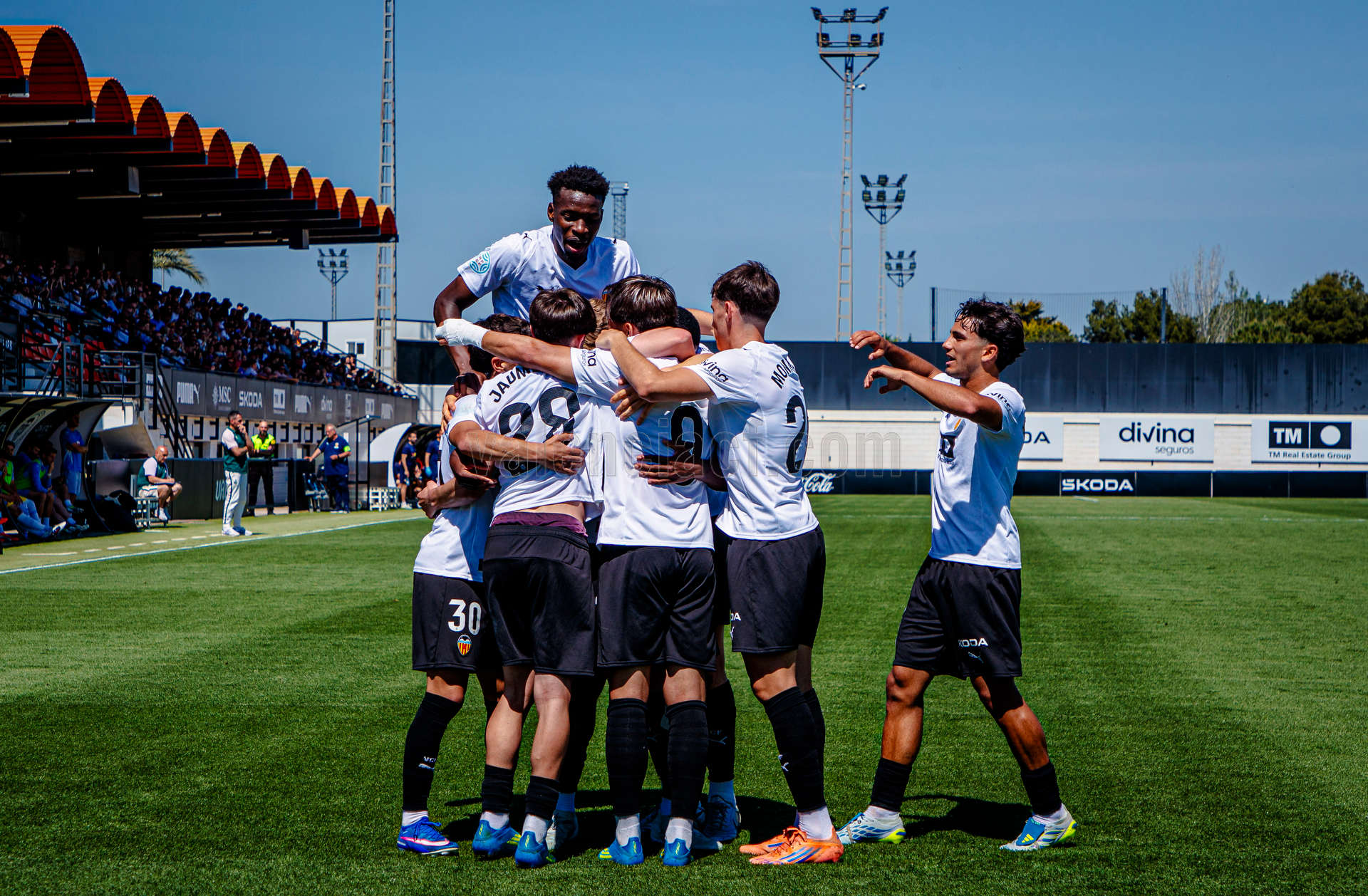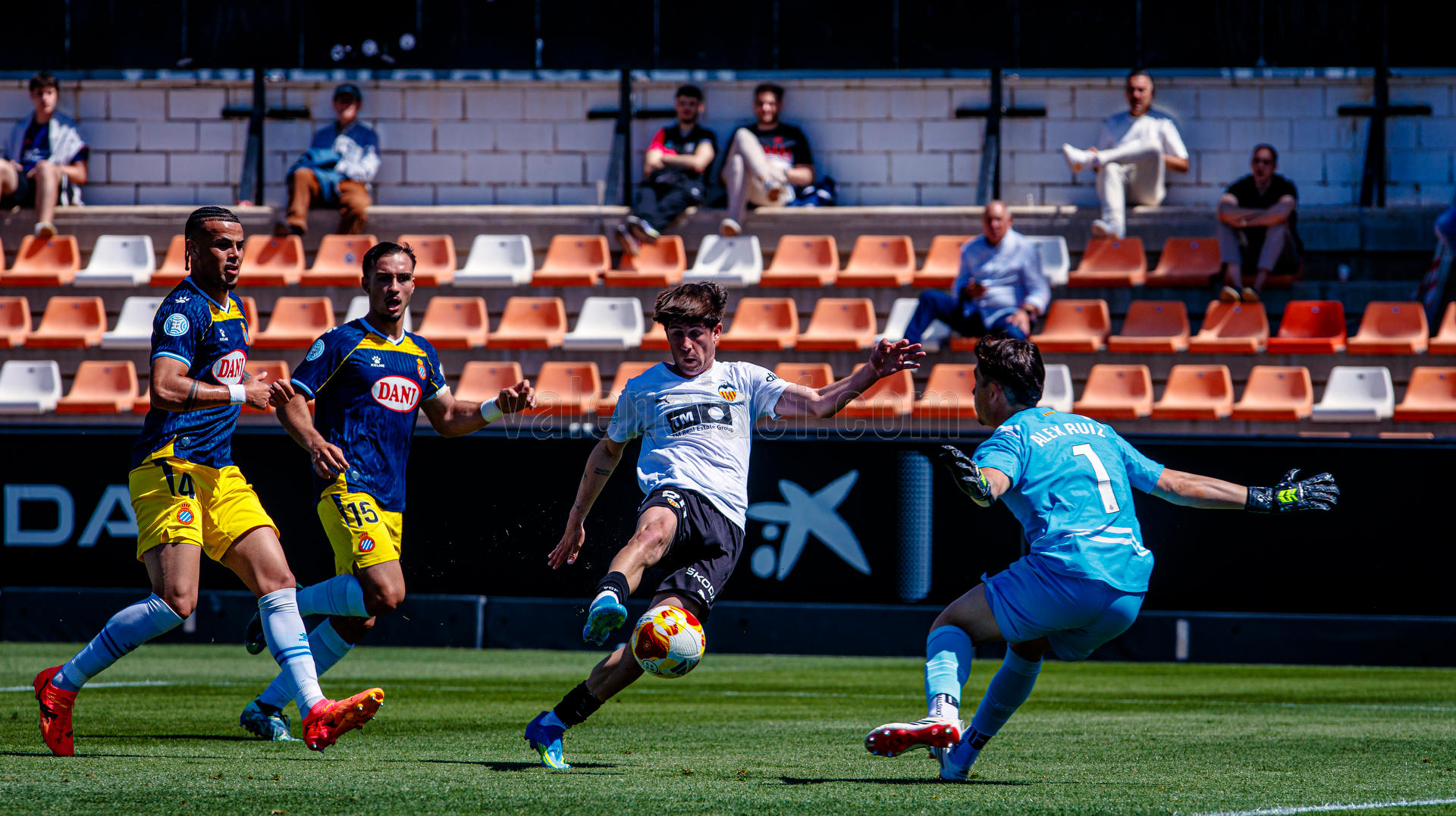 El VCF Mestalla afronta la última jornada con ganas de cerrar de la mejor forma posible el campeonato liguero. Lo hará a domicilio ante la UE Olot (domingo 12:00 horas) y con la certeza de que continuamos el año que viene en Segunda Federación tras otra contundente victoria ante el Espanyol B (3-0) que sellaba la permanencia.