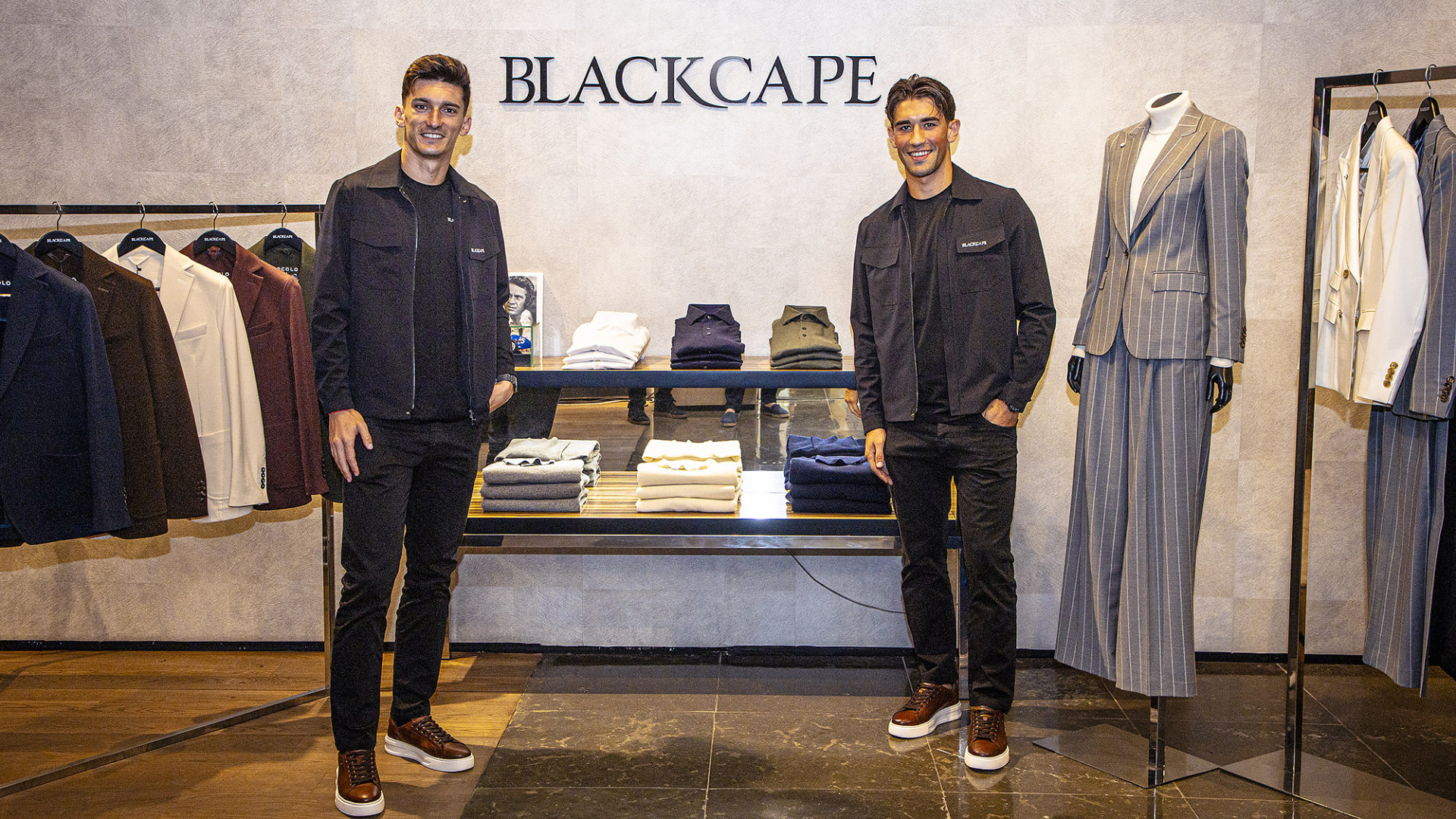 Los jugadores del Valencia CF, Pepelu y Jesús Vázquez, han visitado la tienda oficial de nuestro Official Partner -Blackcape-, evento en el que han lucido el nuevo diseño de la colección para esta temporada. A este acto también ha acudido el director general del Club, Javier Solís.