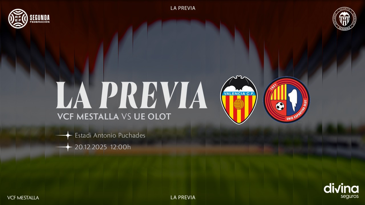 De cara a este encuentro, el extremo del VCF Mestalla Marc Jurado, comentaba: “Queremos seguir con esta buena dinámica que llevamos los últimos partidos y seguir mejorando, que creo que se está anotando en el campo. Estamos siendo más sólidos en defensa, aunque nos está faltando un poco materializar las ocasiones y ser más efectivos”. A lo que añadía: “Vamos a intentar conseguir los tres puntos ante la UE Olot para irnos con buenas sensaciones al parón de Navidad”.