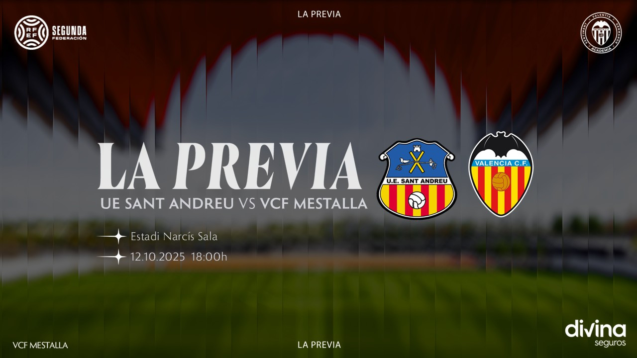 El VCF Mestalla afronta dos salidas consecutivas tras empatar sobre la bocina ante el CD Castellón B. El filial valencianista sigue buscando su primer triunfo liguero del curso y tiene una nueva oportunidad para lograrlo este domingo a las 18:00 horas (en directo por VCF Media Radio, App y web VCF) ante la UE Sant Andreu en el Estadi Narcís Sala en el partido correspondiente a la Jornada 6 de Segunda Federación Grupo 3.