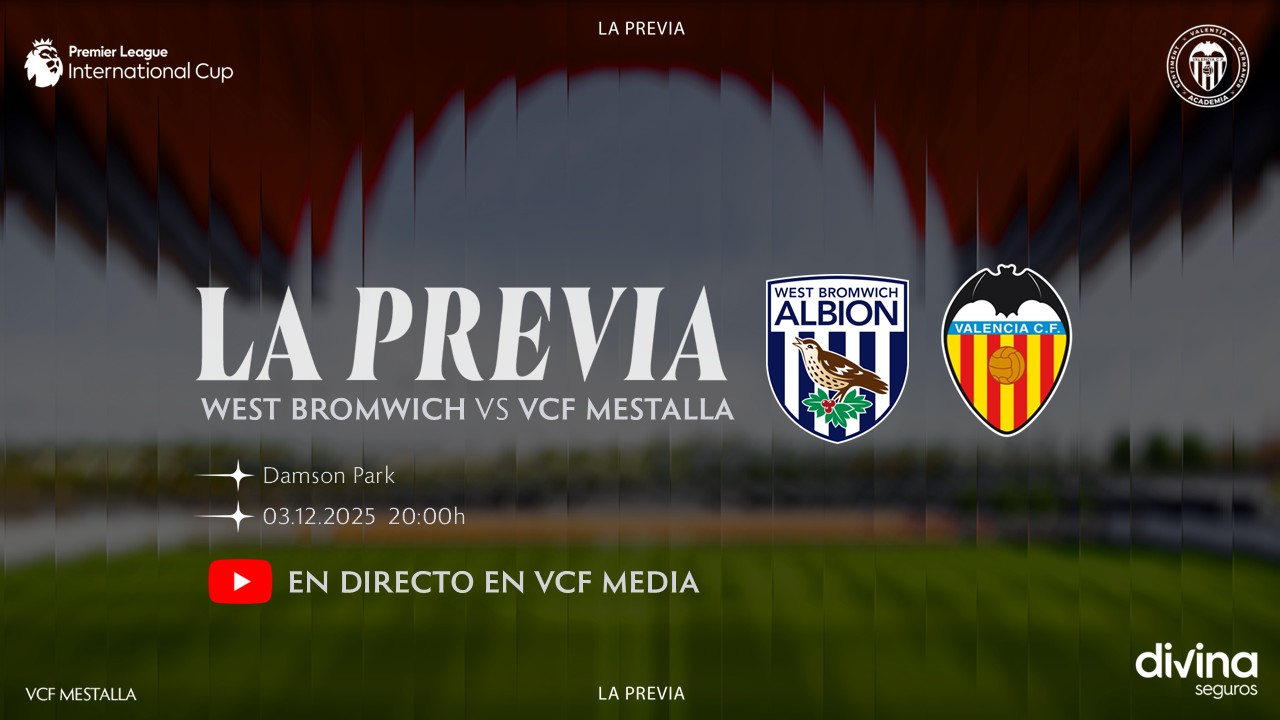 El VCF Mestalla afronta este miércoles a las 20:00 horas (en directo por YouTube, App y web VCF, y VCF Media Radio) la última jornada de la fase de grupos de la Premier League International Cup. El filial valencianista se enfrenta al West Bromwich Albion en Damson Park (Solihull) en busca de una victoria que le permita tener opciones de clasificarse para la siguiente ronda como uno de los dos mejores del Grupo B. El filial ha sumado en las jornadas anteriores dos victorias ante Leicester City (1-3) y Crystal Palace (0-1) y una derrota ante el Fulham (3-2).