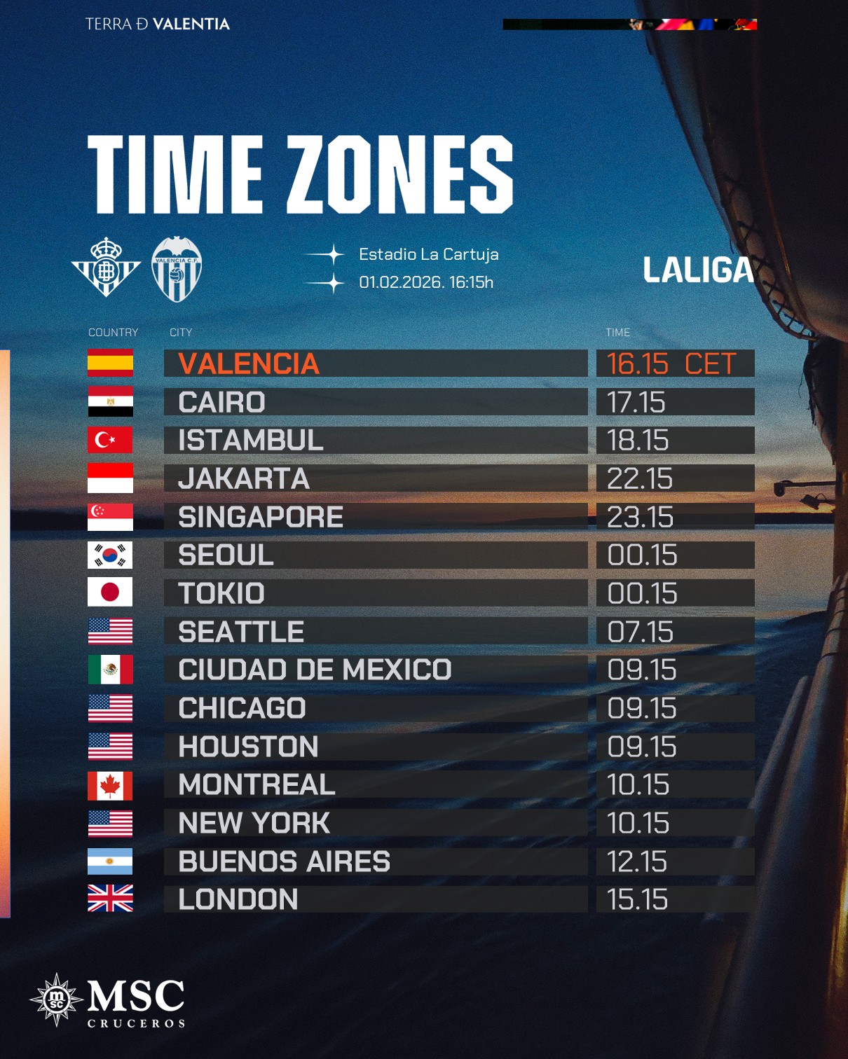 El Reial BetisValencia CF, partit corresponent a la jornada 22 de LALIGA EA SPORTS 25-26, es disputarà el dissabte, 1 de febrer de 2026 a les 16:15 hores (hora espanyola), a La Cartuja.