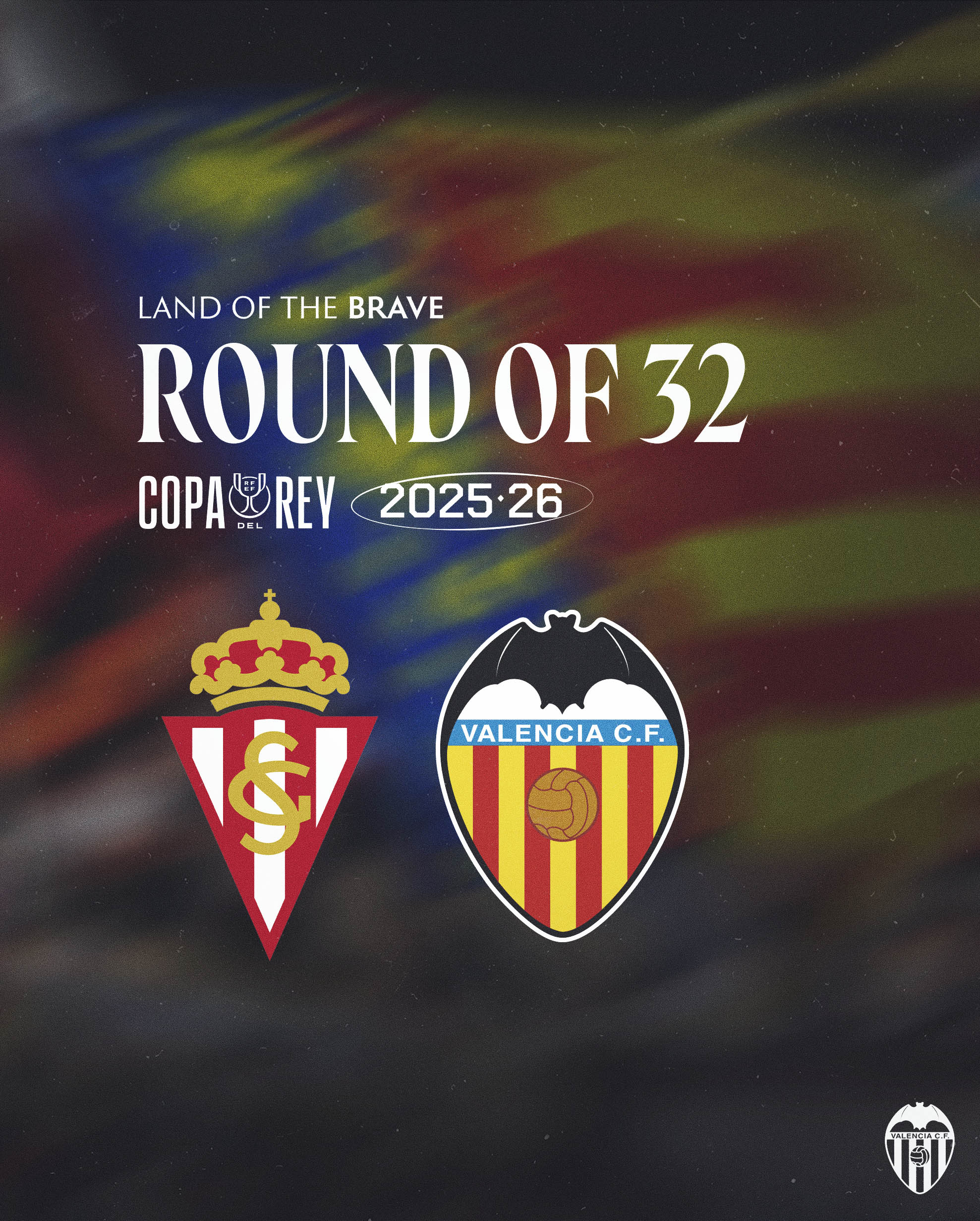 Valencia CF will face Real Sporting de Gijón in the Round of 32 of the 2025–26 Copa del Rey. The pairing was determined by the draw held on Tuesday morning at the Ciudad del Fútbol in Las Rozas. The match will be a single-leg tie, played between December 16–18, at El Molinón–Enrique Castro “Quini” Stadium.