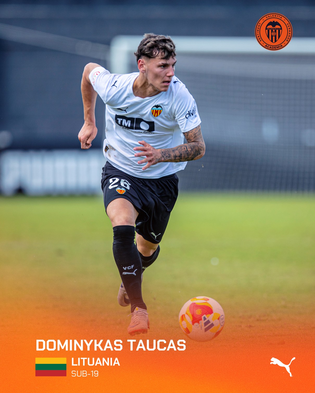 Dominycas Taucas, delantero del VCF Juvenil A que cumple su décima temporada en la Academia VCF, es un habitual de las convocatorias de las categorías inferiores de la Selección Nacional de Lituania.