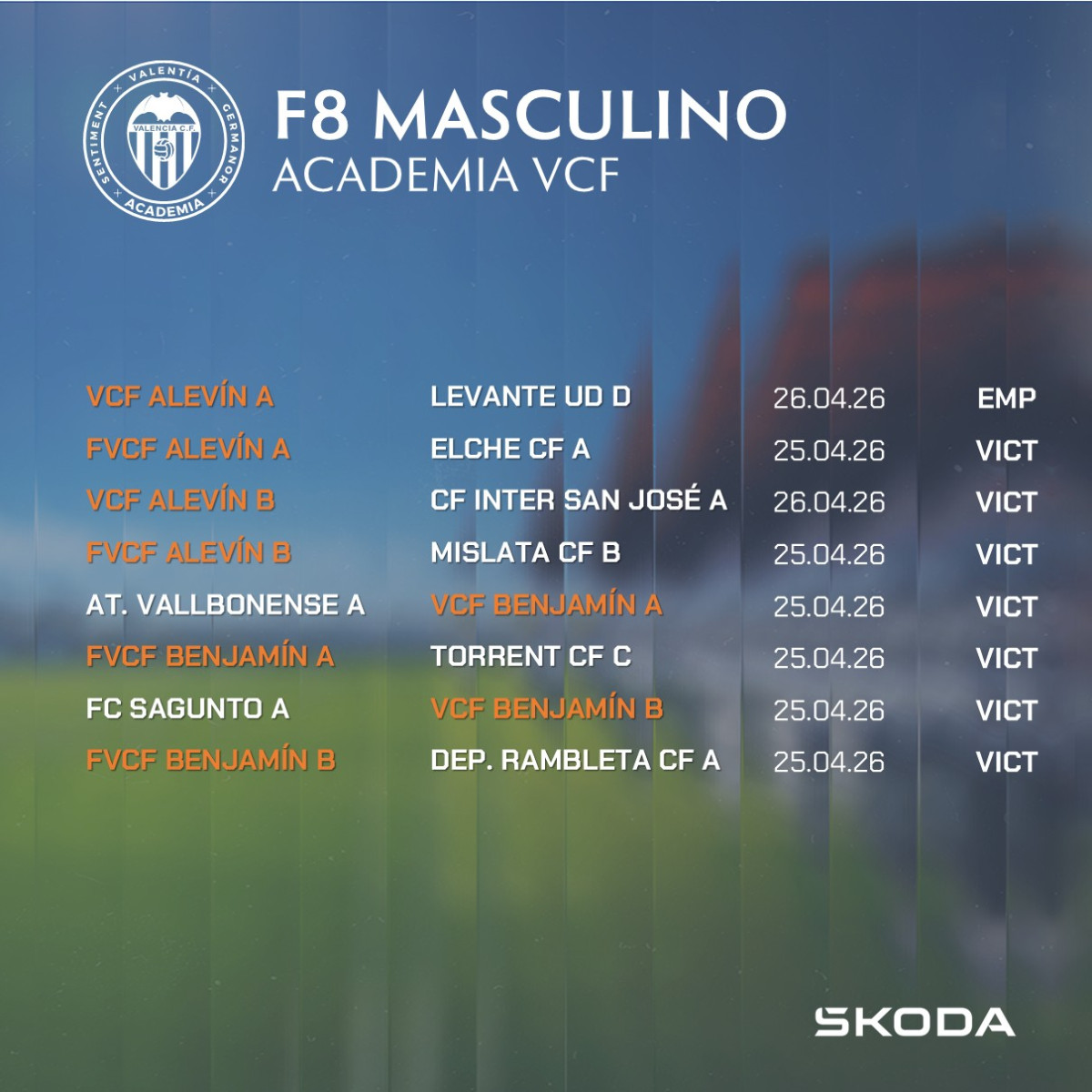 RESULTADOS DEL FIN DE SEMANA EN LA ACADEMIA VCF