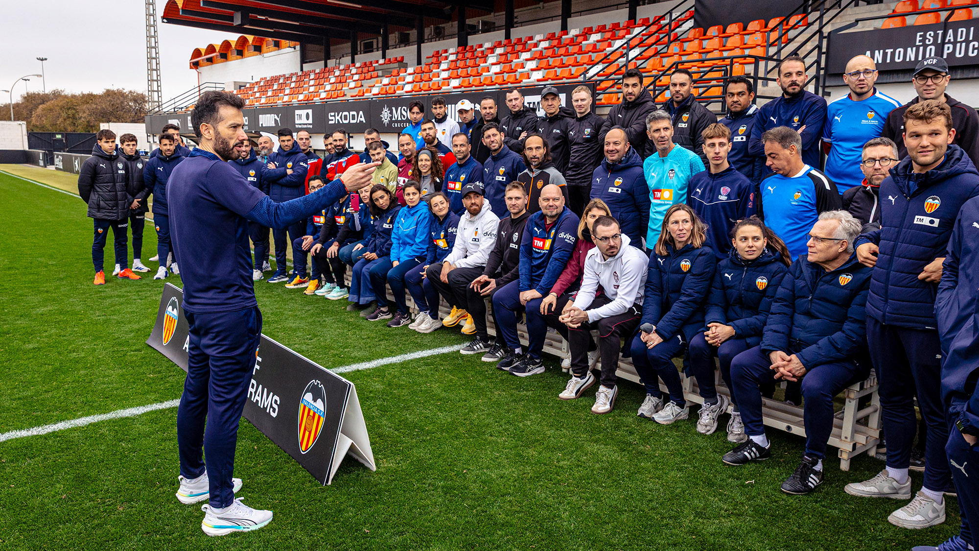Los 60 técnicos tuvieron opción de realizar sesiones teóricas y prácticas con los distintos departamentos de la Academia del Valencia CF, además de poder disfrutar de un encuentro con el entrenador del Valencia CF, Carlos Corberán, y un especial acto de clausura en Mestalla con la presencia del Director General del Valencia CF, Javier Solís, y el CEO de Fútbol, Ron Gourlay.