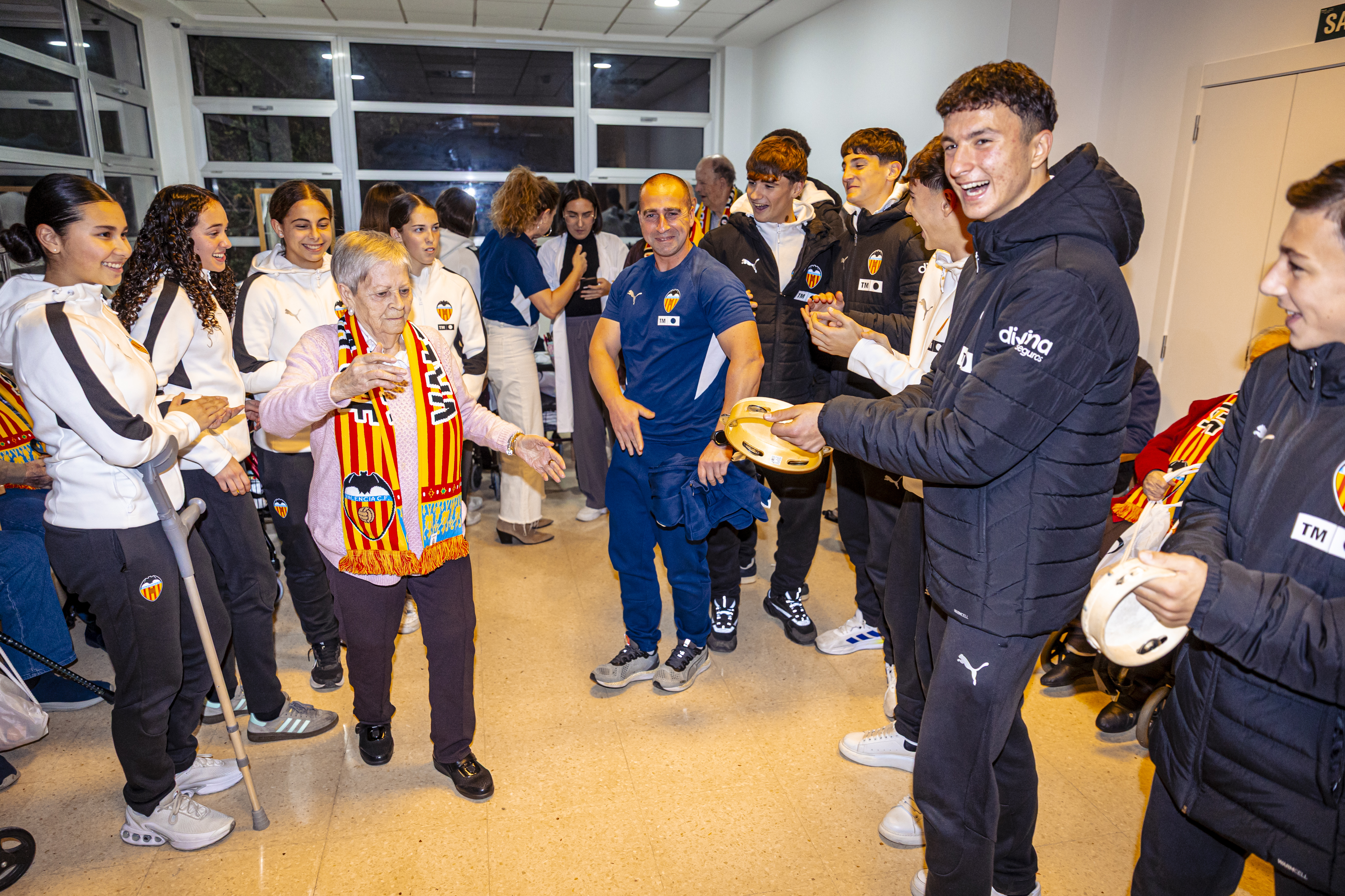 Una representación de jugadores/as de la Academia VCF compartieron una emotiva tarde con los residentes del Centro Novaedat Sedaví