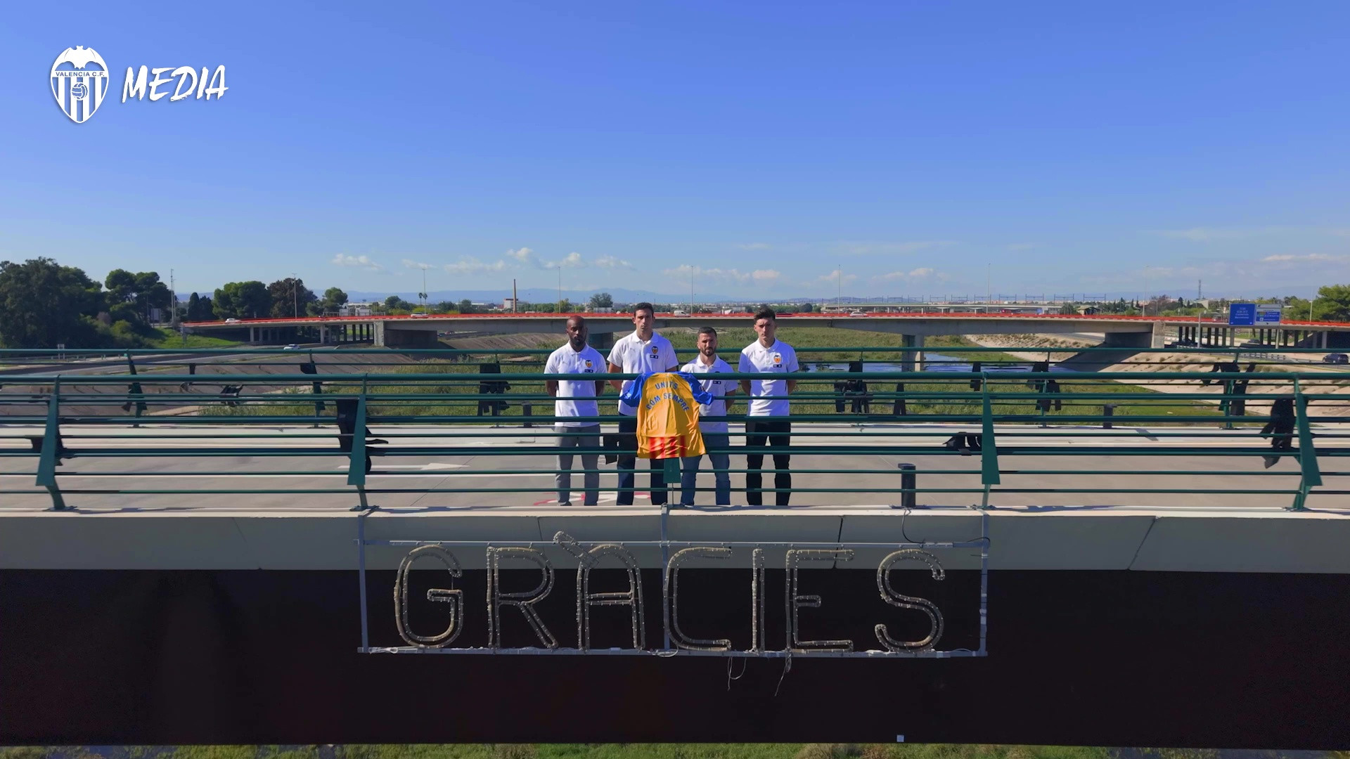 Els capitans del primer equip masculí -José Luis Gayà, César Tárrega, Pepelu i Foulquier- han estat en el ‘Pont de la Solidaritat’ pel qual tantes persones van creuar per a ajudar als afectats per la terrible riuada.