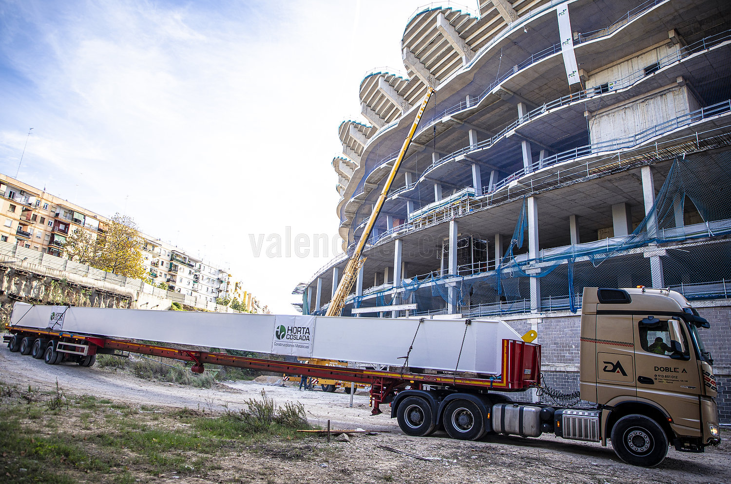 Comença l'arribada dels pilars sobre els que s'assentarà la gran coberta del Nou Mestalla