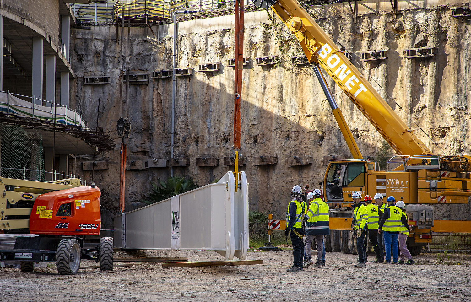 Les obres del futur estadi del Valencia CF entren en una nova fase amb estes peces de 38 metres d'altura que constituiran, a més, les columnes principals
