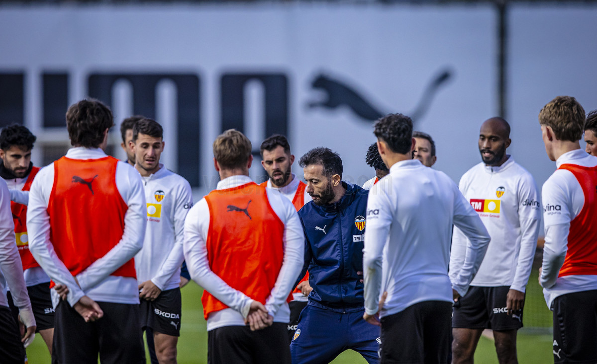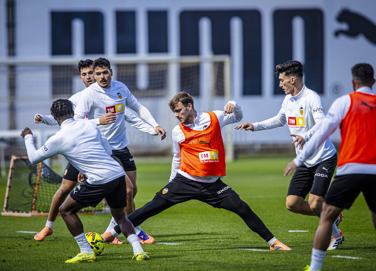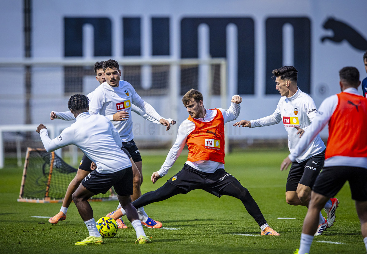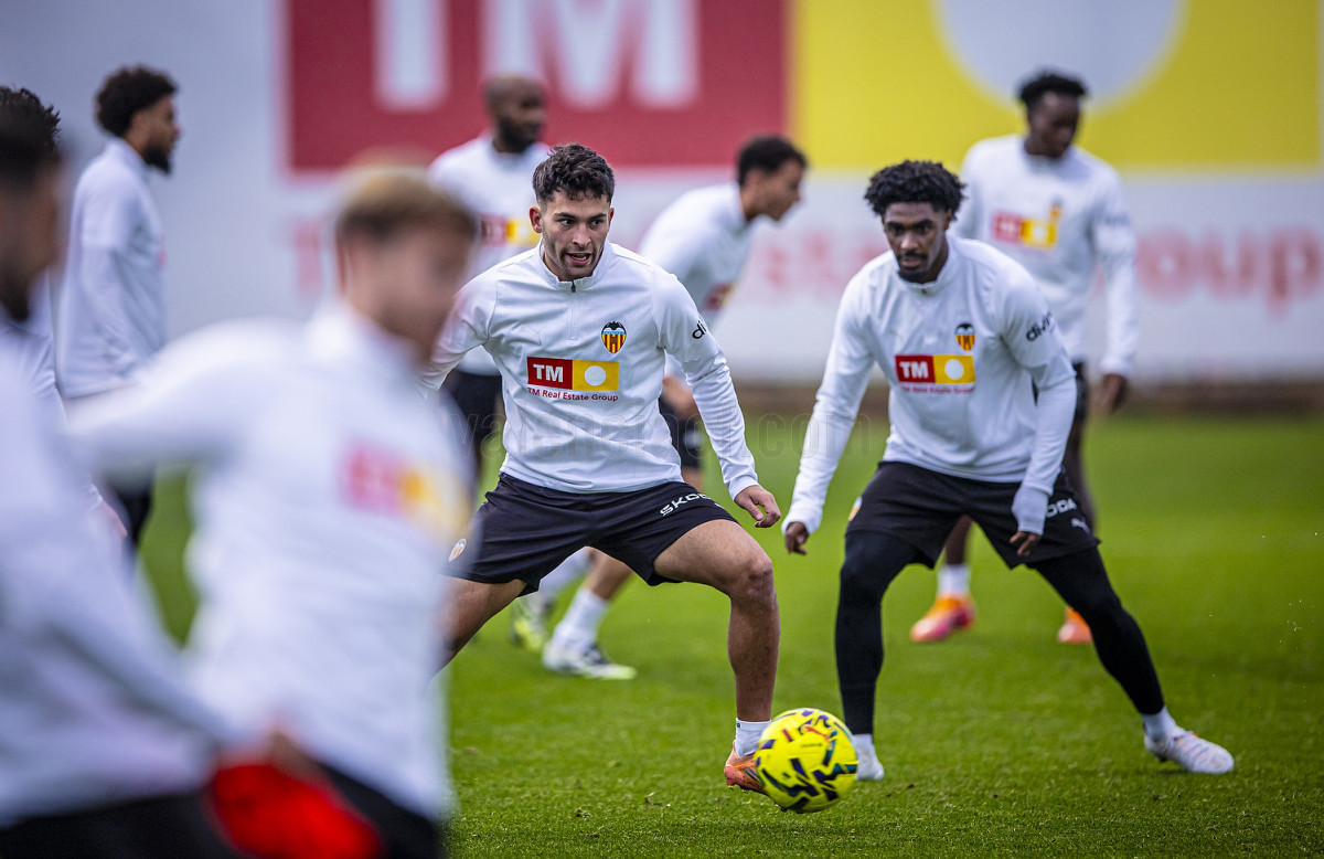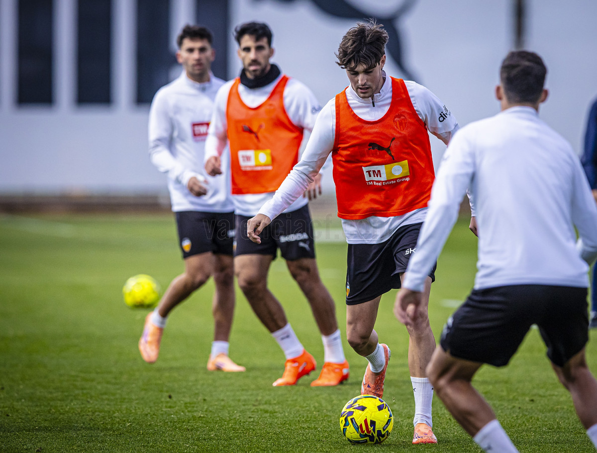 L'atacant del Valencia CF ha realitzat diversos exercicis amb pilota a la part inicial de la sessió