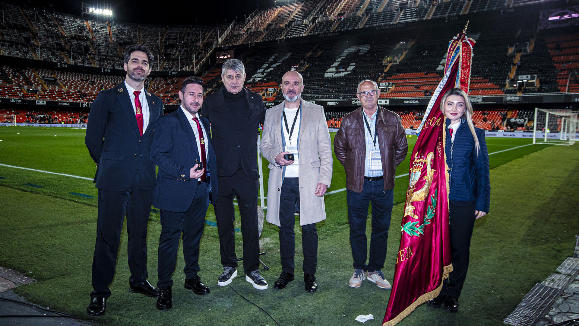 Aquest diumenge, amb motiu del partit Valencia CF – Real Madrid de la Jornada 23 de LaLiga EA Sports 2025-26, ens ha visitat al Camp de Mestalla la banda simfònica de la Sociedad Musical Ciudad de Torrevieja.