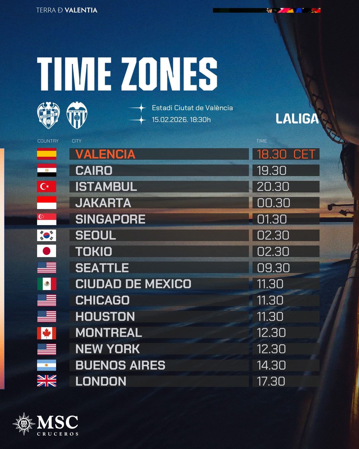 El Llevant UEValencia CF, partit corresponent a la jornada 24 de LALIGA EA SPORTS 25-26, es disputarà el dissabte, 15 de febrer de 2026 a les 18:30 hores (hora espanyola), al Ciutat de València.